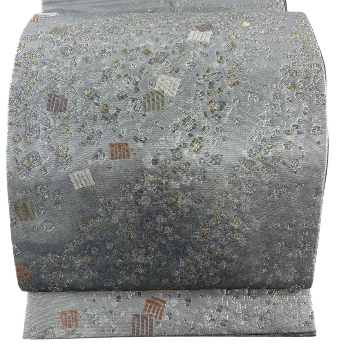 30%OFF 【美品】 袋帯 秀品 片輪車 波 箔 灰緑 お太鼓柄 正絹 K30