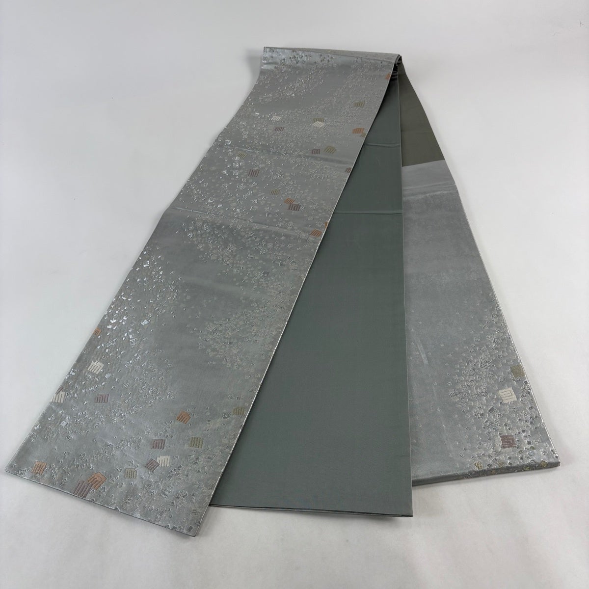 30%OFF 【美品】 袋帯 秀品 桜 蝶 金銀糸 箔 灰色 六通 正絹 K30