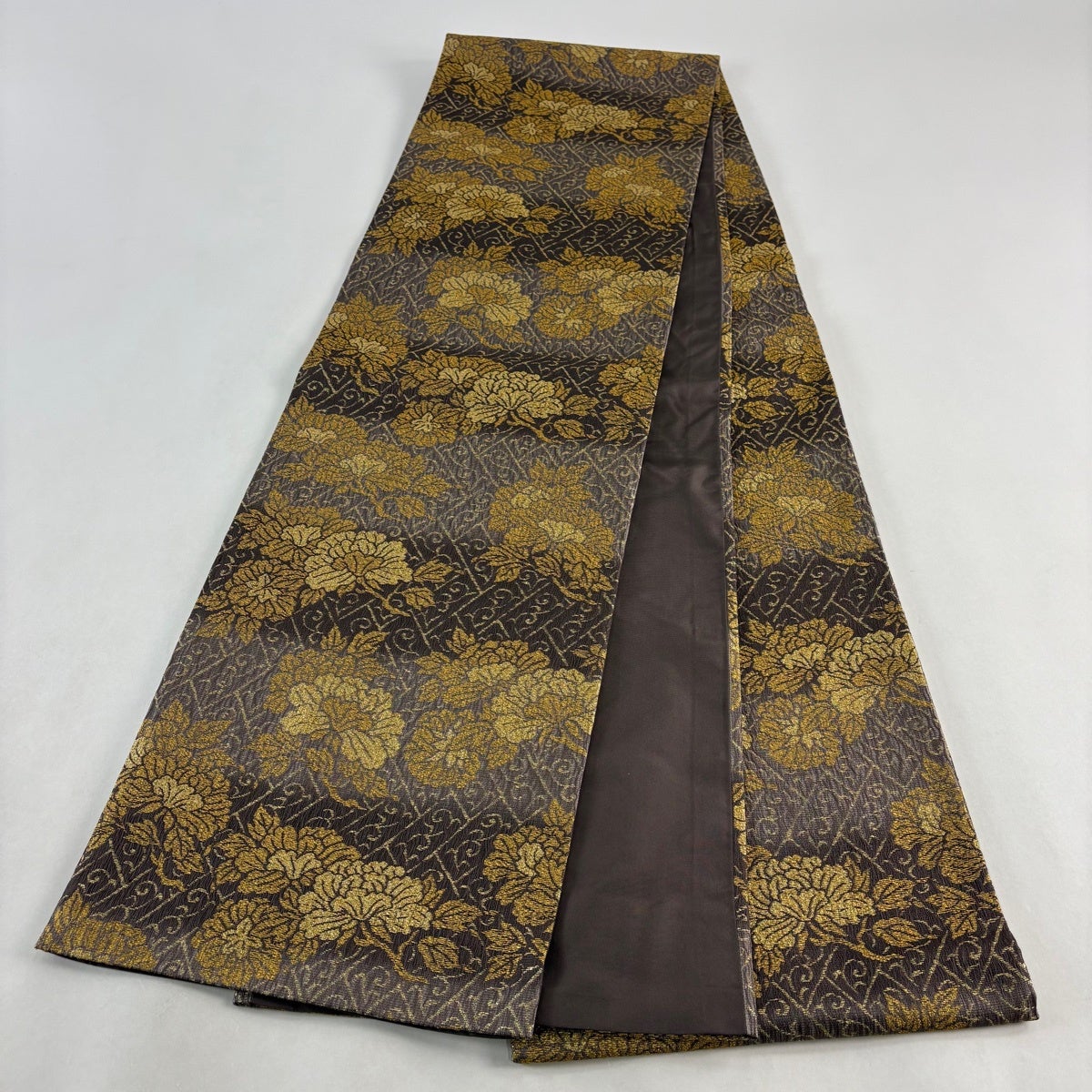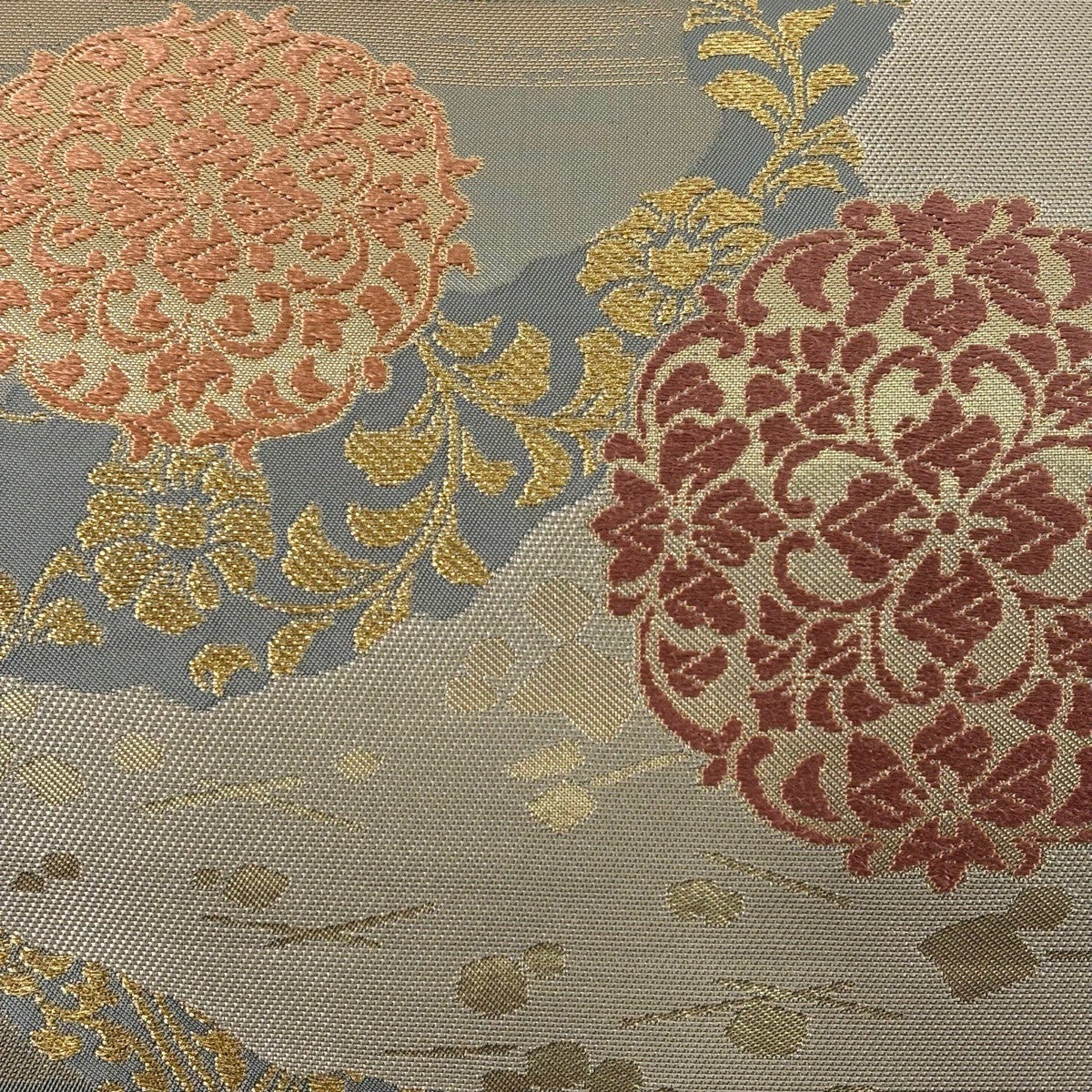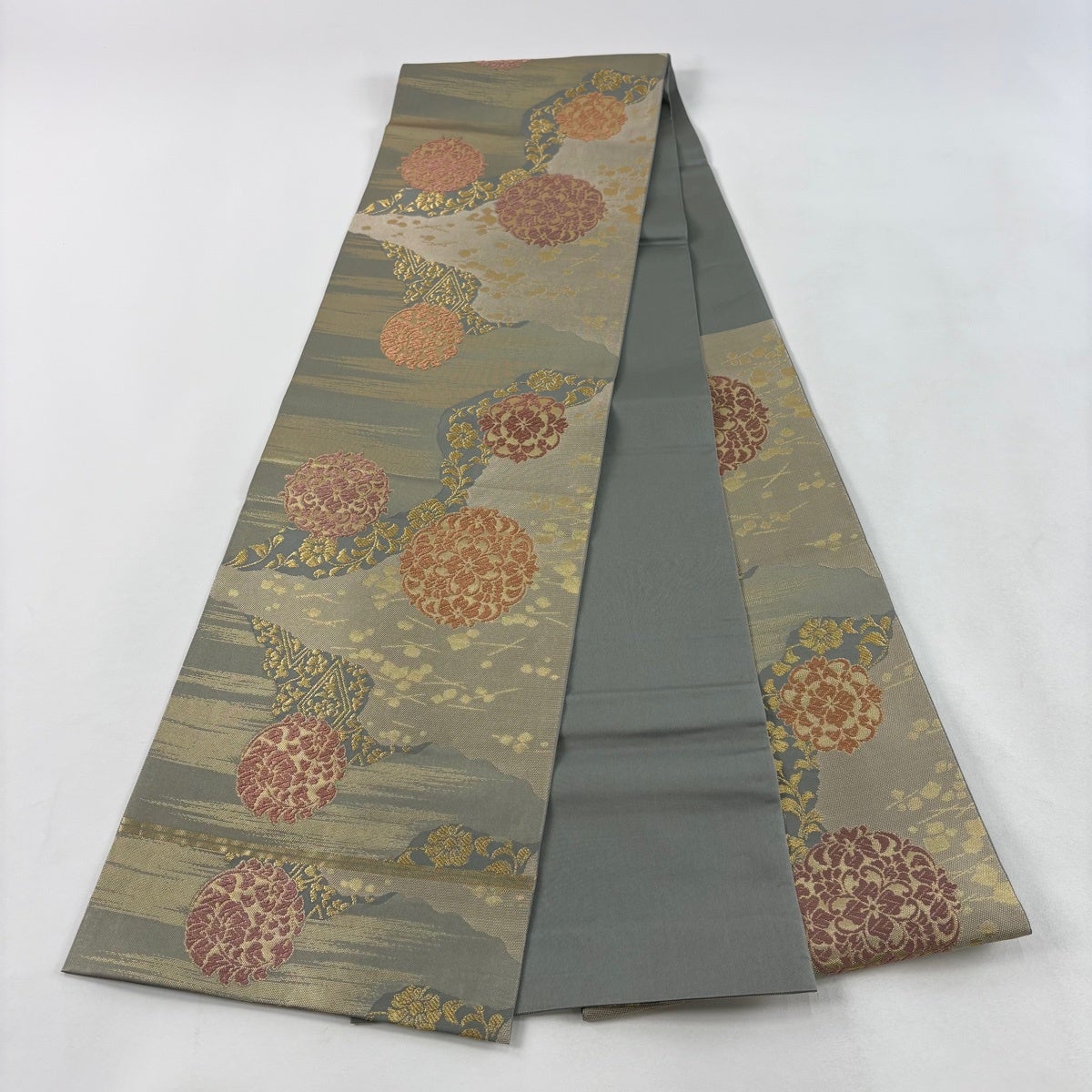 30%OFF 【美品】 袋帯 秀品 牡丹 萩 金糸 箔 灰茶 六通 正絹 K30