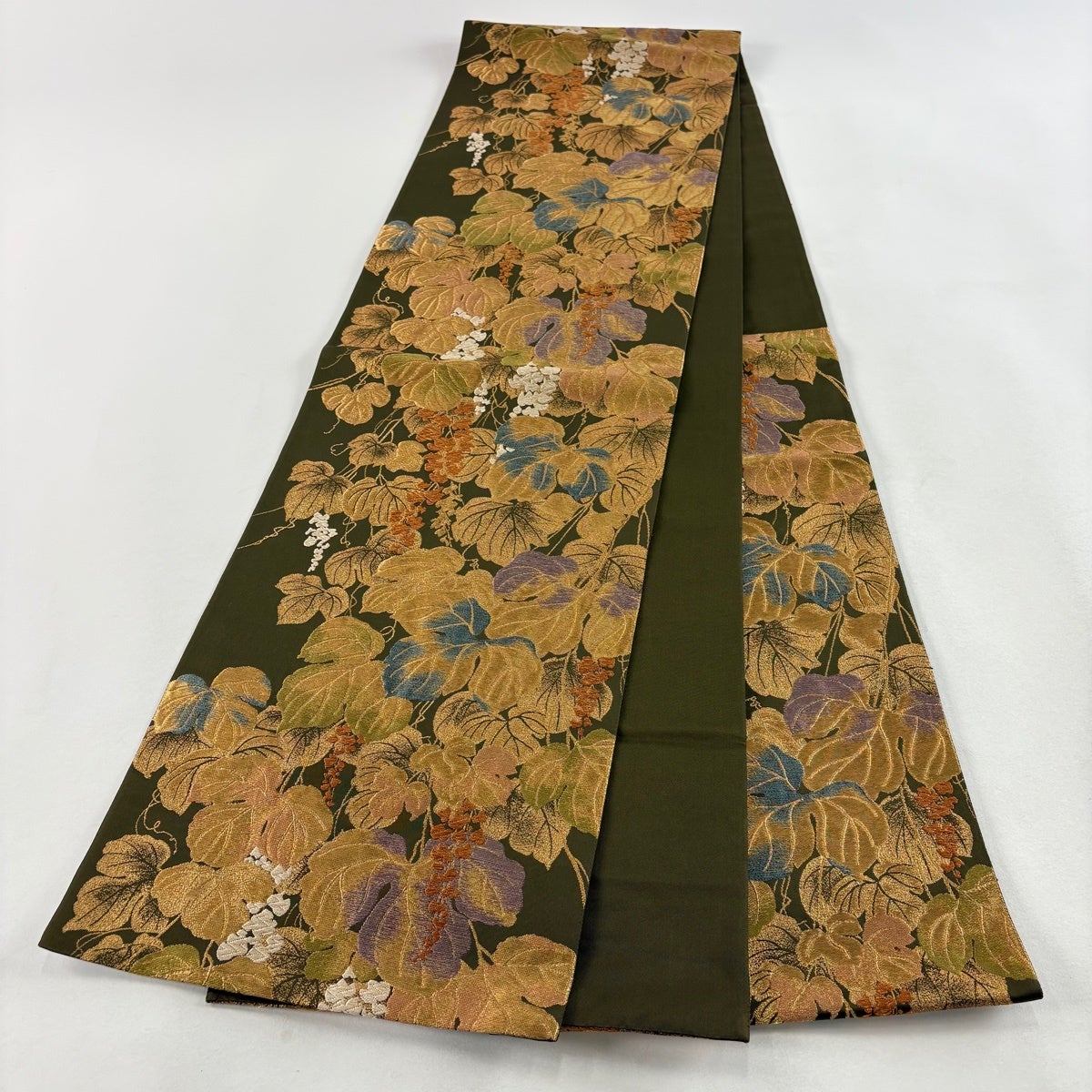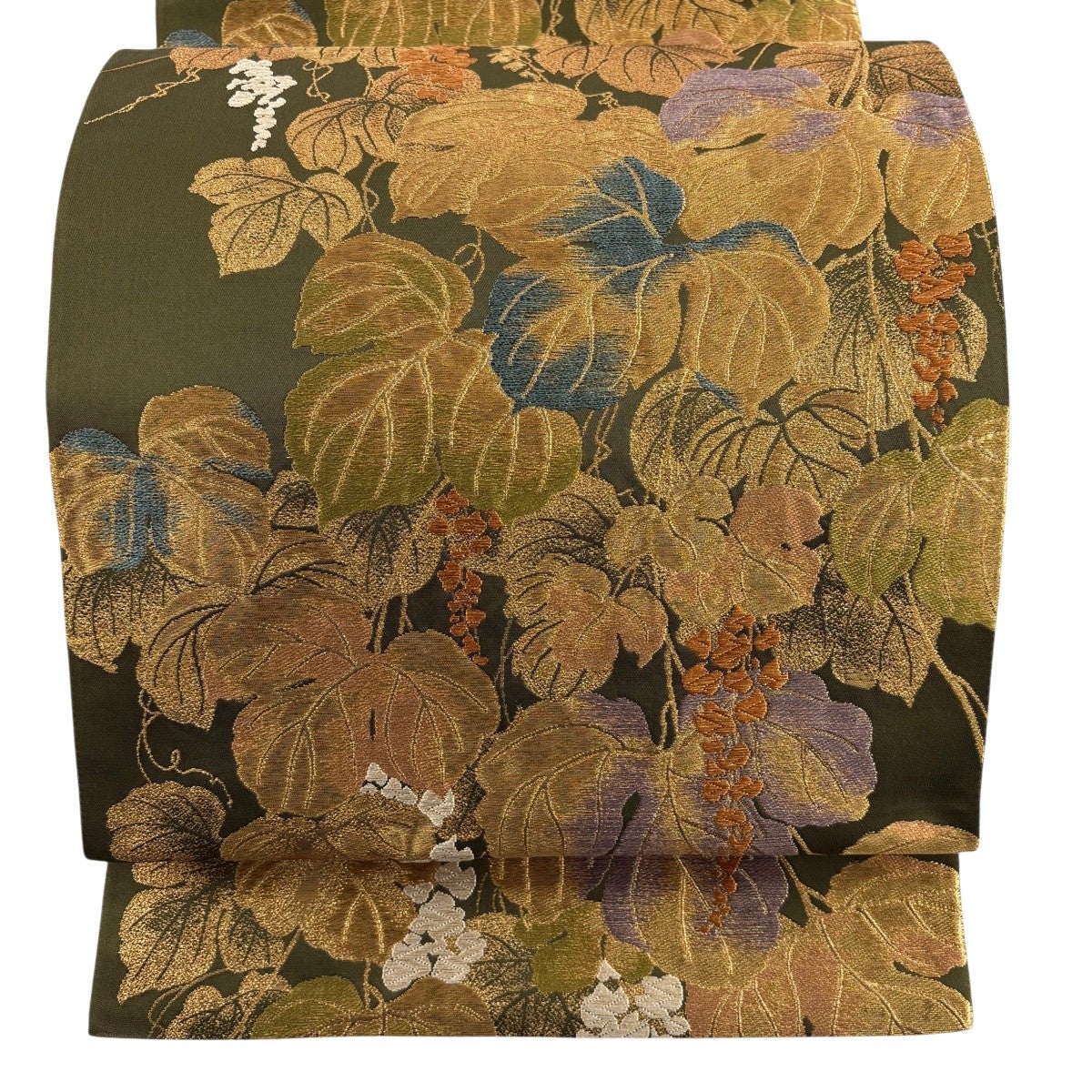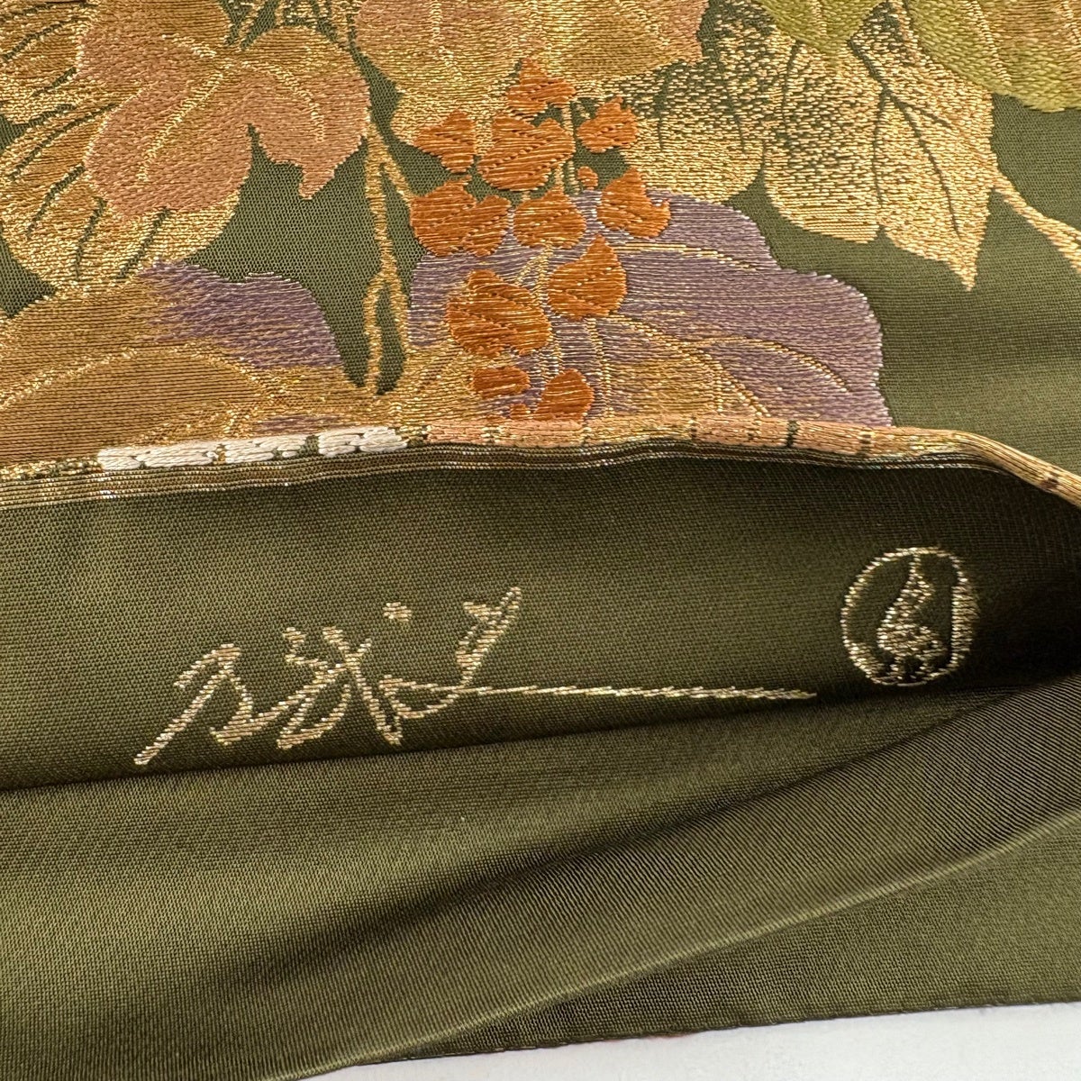 30%OFF 【美品】 袋帯 秀品 風景 樹木 金糸 箔 緑 六通 正絹 K30
