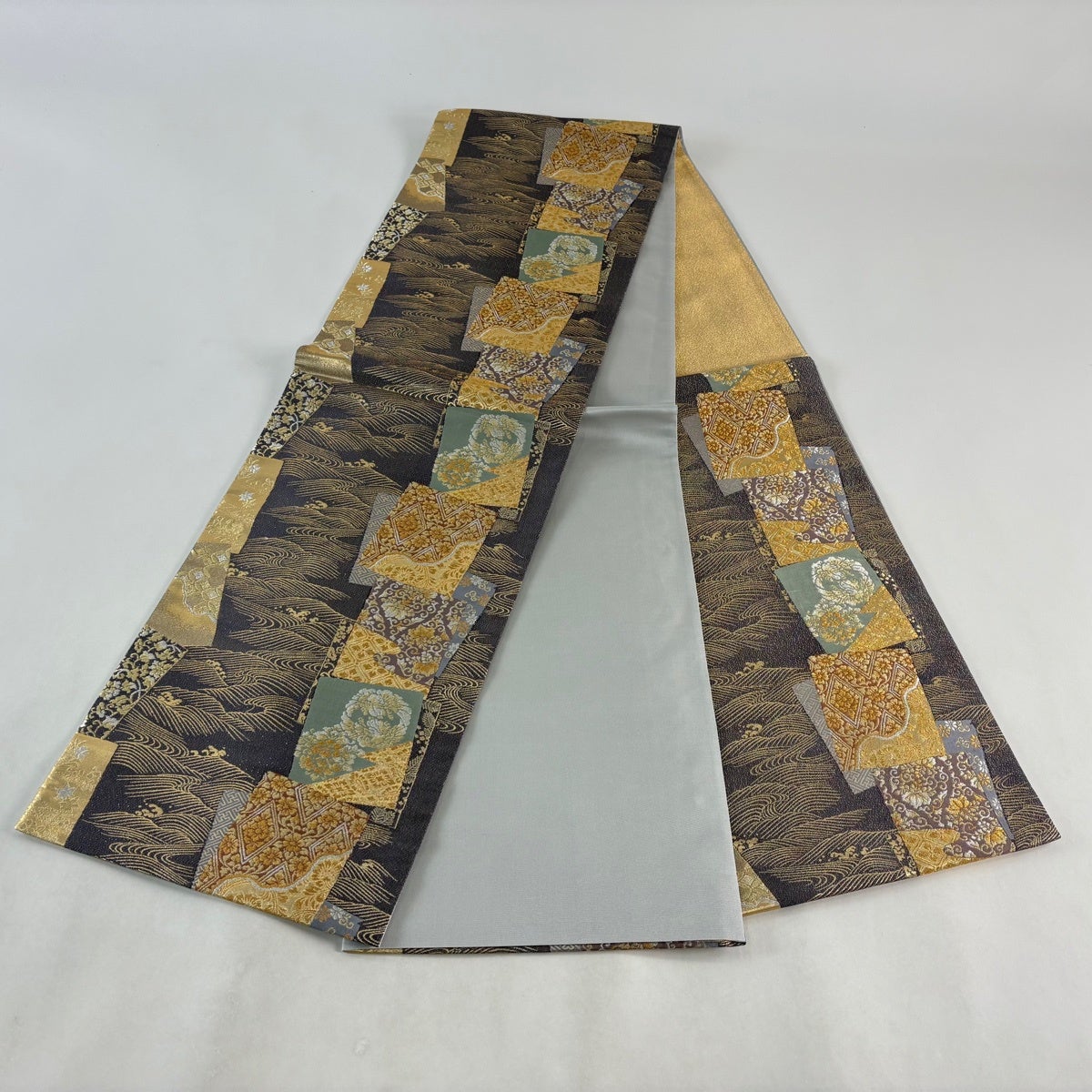 30%OFF 【美品】 袋帯 秀品 華文 熨斗 金糸 箔 黒 六通 正絹 K30
