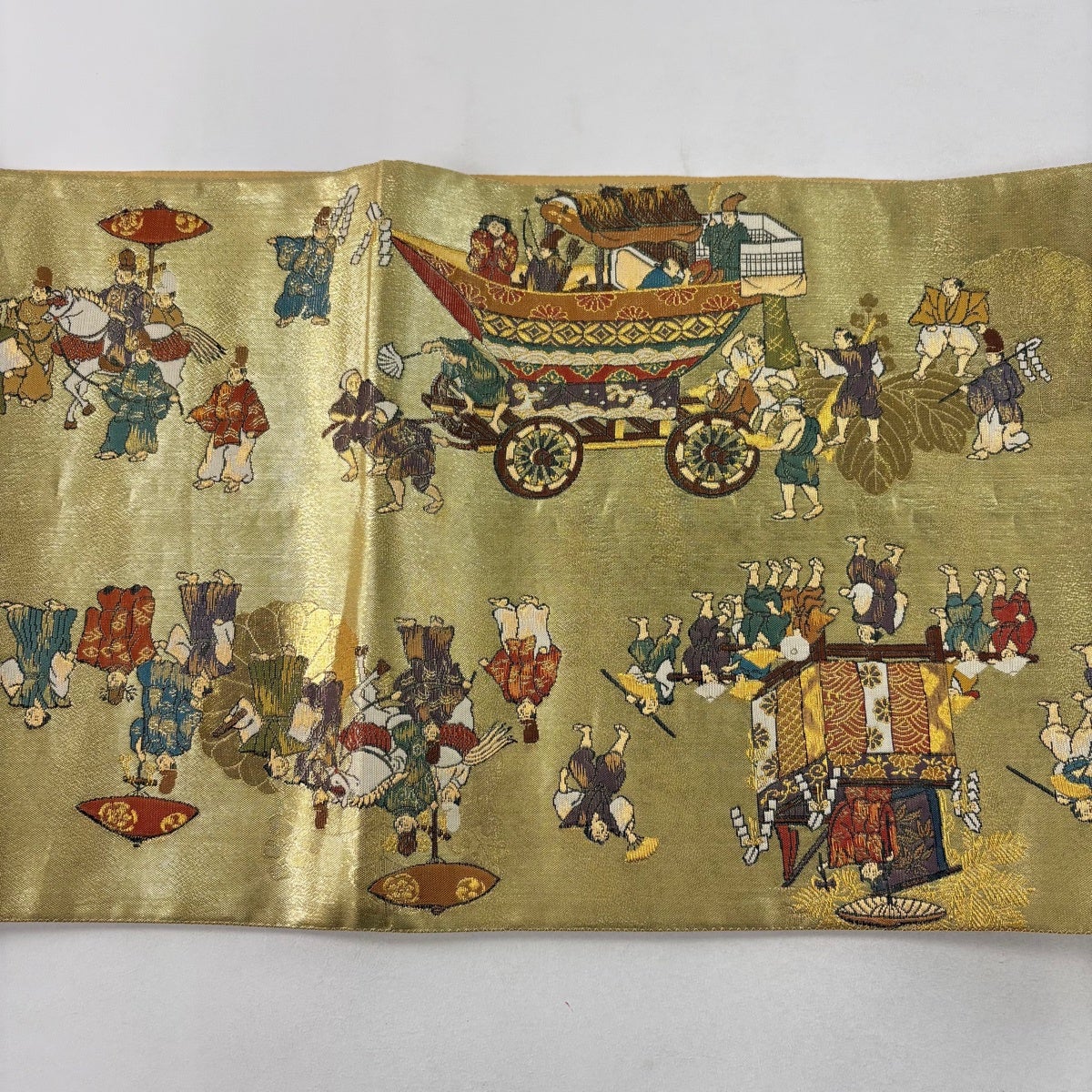 袋帯 名品 落款あり 箔屋清兵衛 名物裂間道 箔 金色 お太鼓柄 正絹