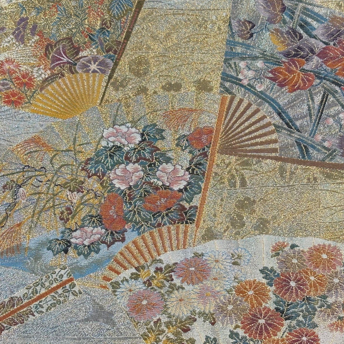 【美品】 袋帯 秀品 落款あり 扇面 立涌 金糸 箔 金色 六通 正絹