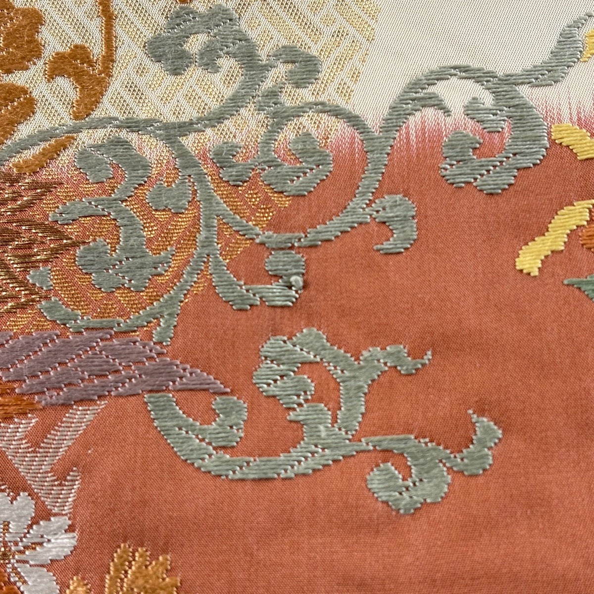 【美品】 袋帯 秀品 花丸文 草花 金糸 箔 オレンジ 六通 正絹
