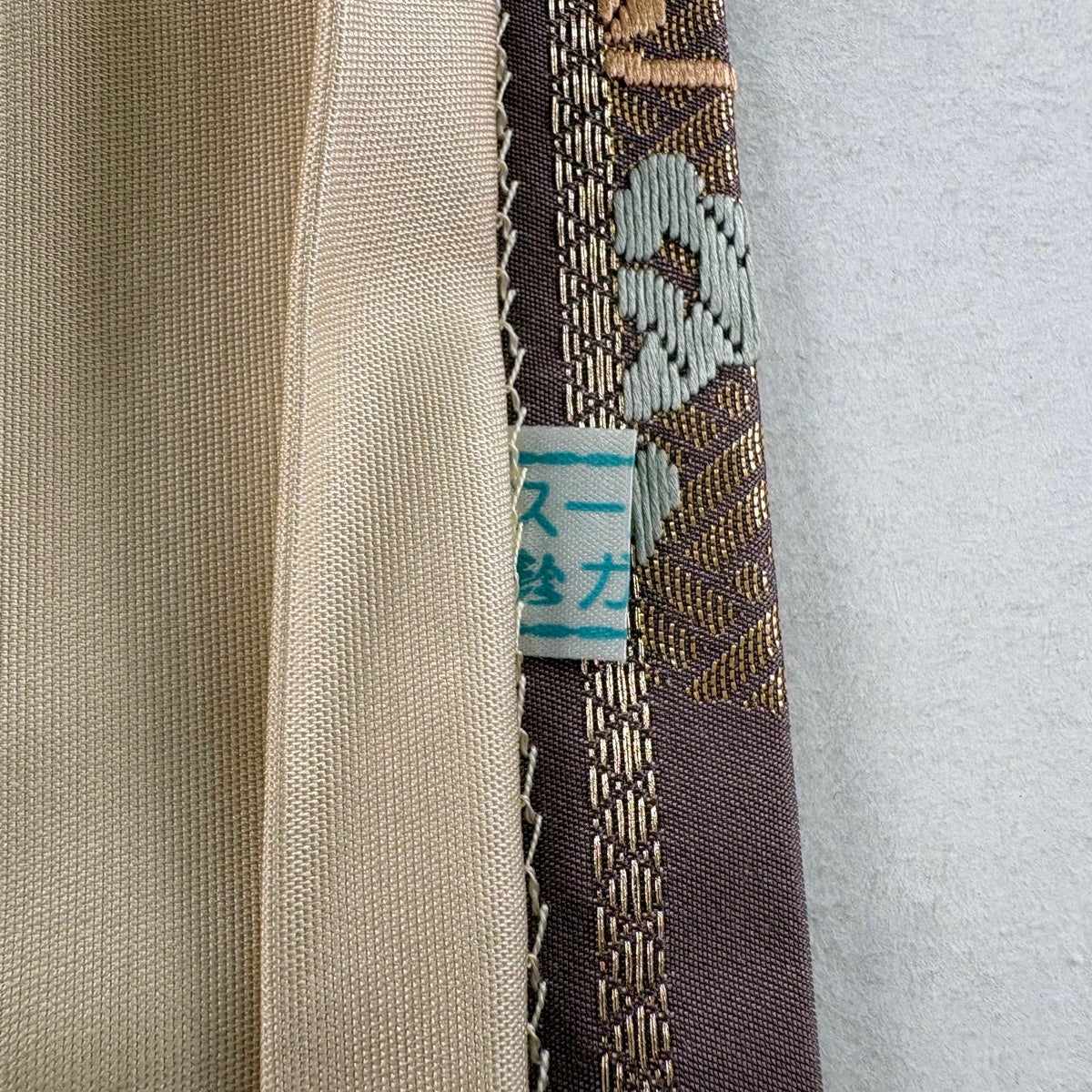 【美品】 袋帯 秀品 華文 裂取 金糸 箔 ベージュ 六通 正絹