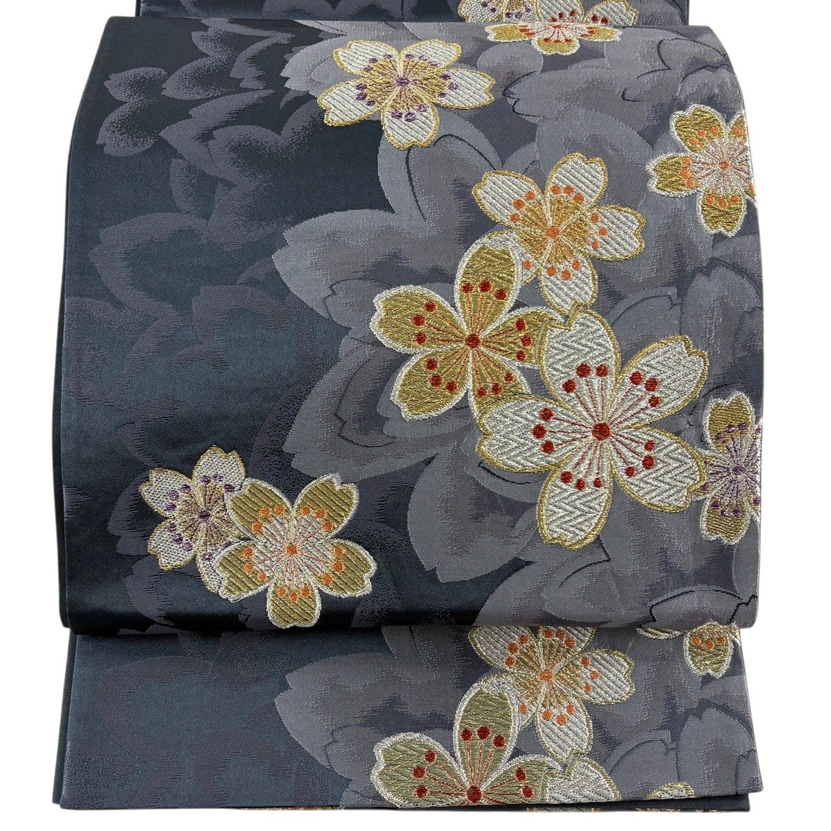 袋帯 秀品 桜 華文 金銀糸 箔 金色 六通 正絹