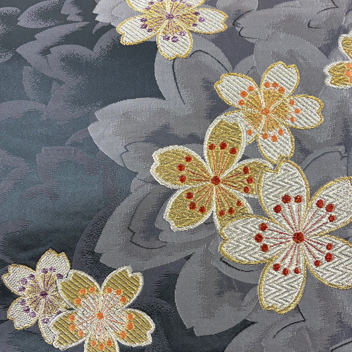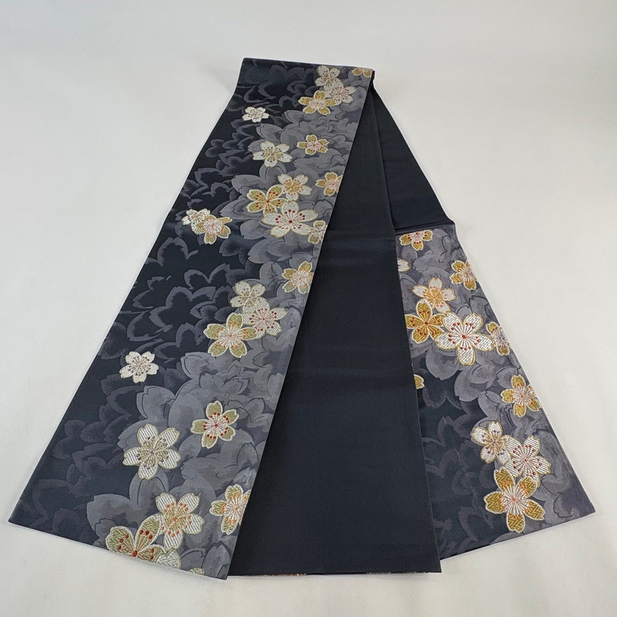 袋帯 秀品 桜 流水 金銀糸 箔 黒 六通 正絹