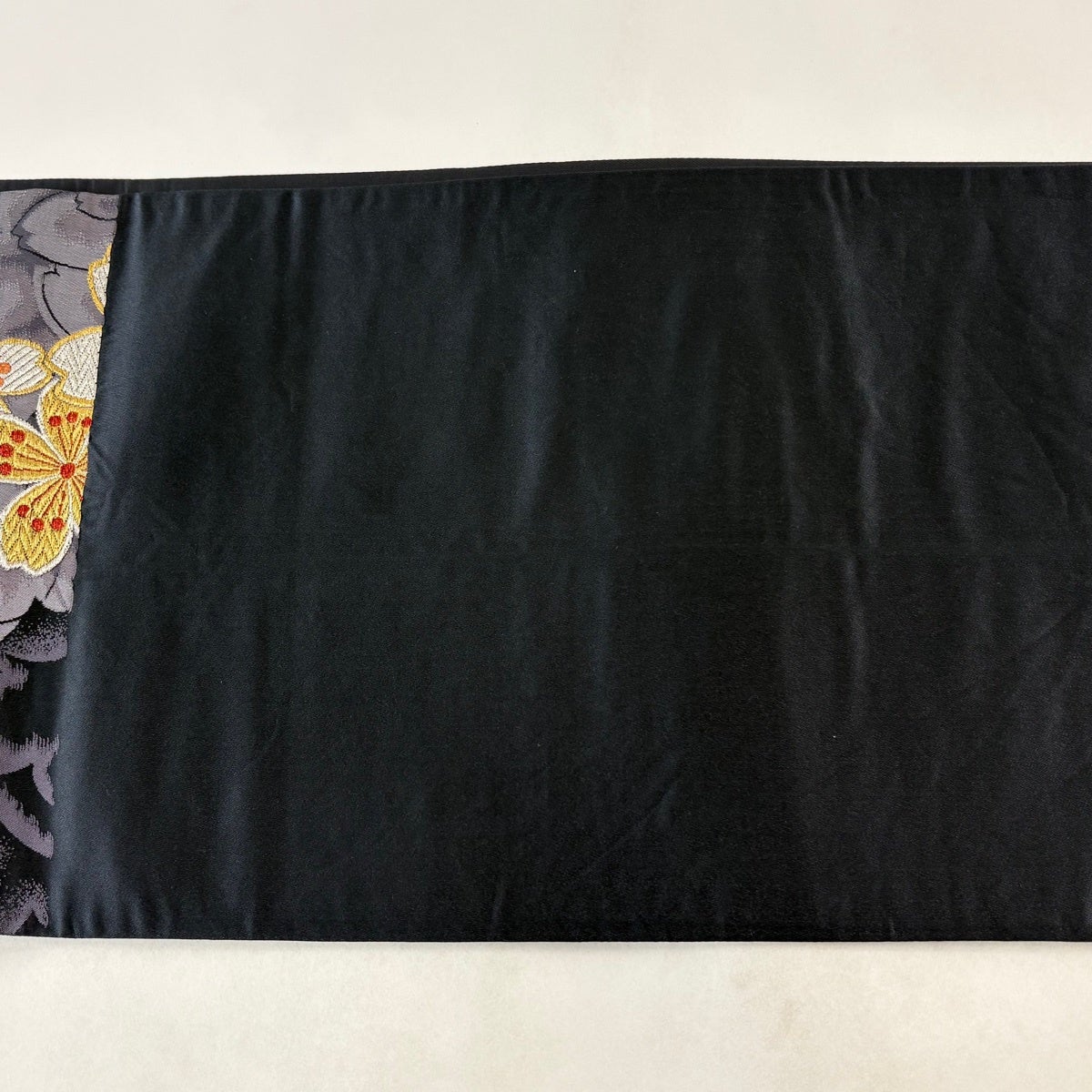 袋帯 秀品 牡丹 草花 金糸 箔 黒 六通 正絹