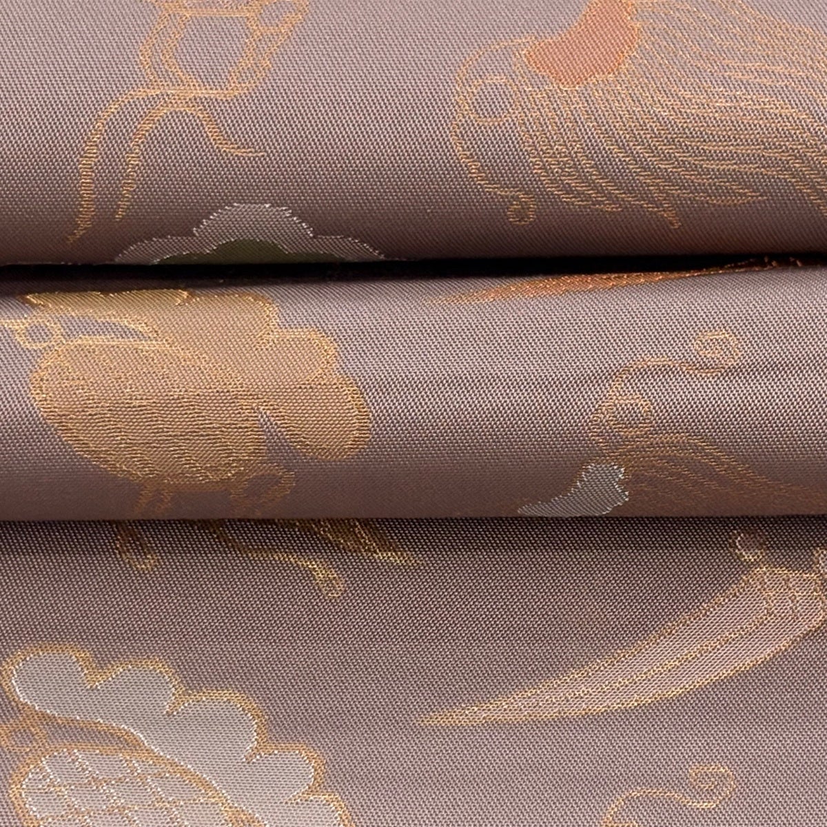 【美品】 袋帯 名品 じゅらく 落款あり 牡丹 草花 金銀糸 箔 灰紫 お太鼓柄 正絹