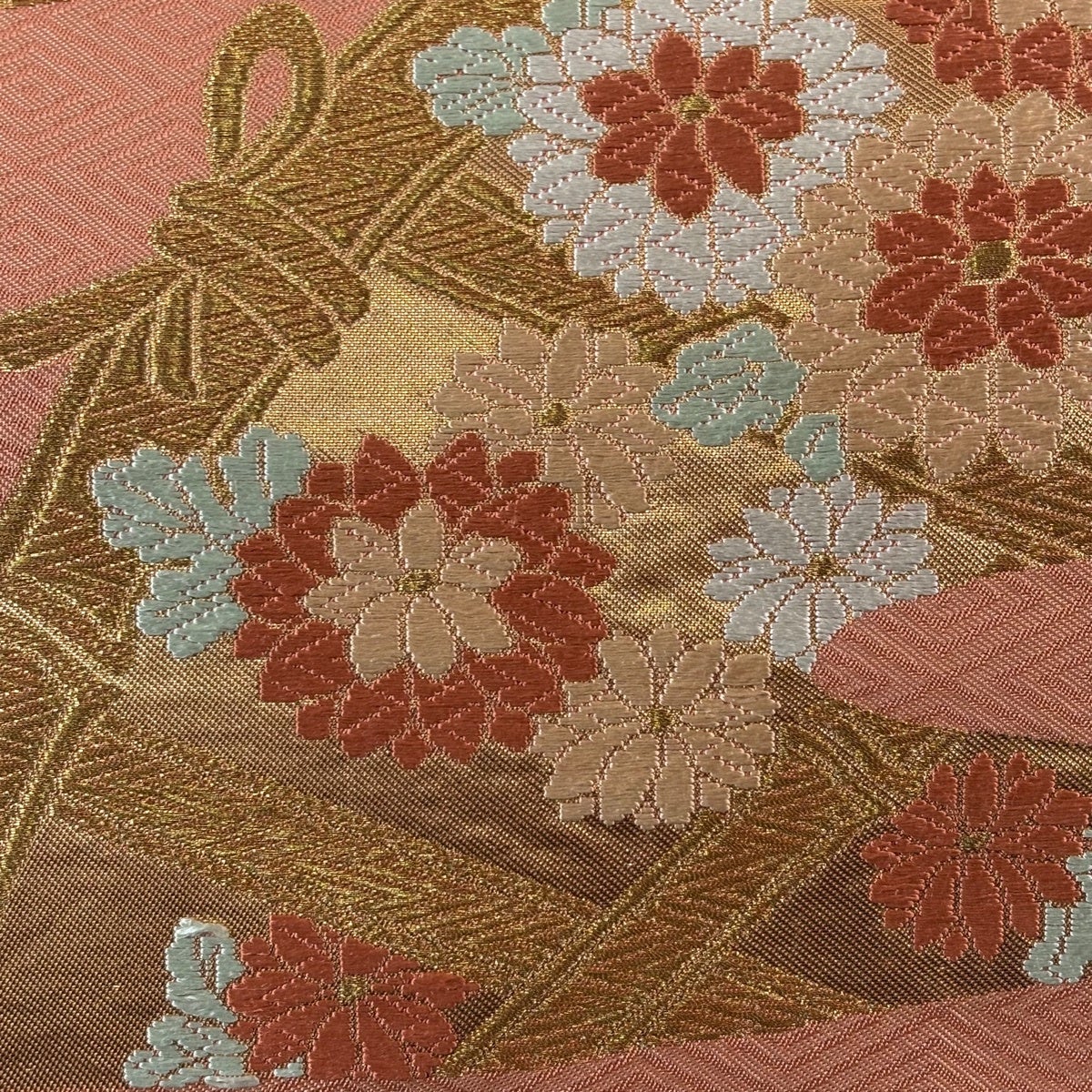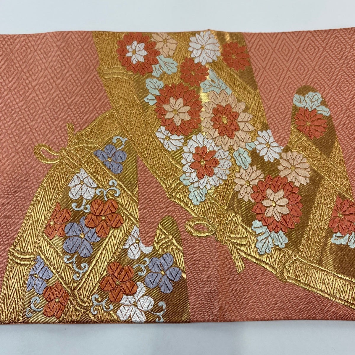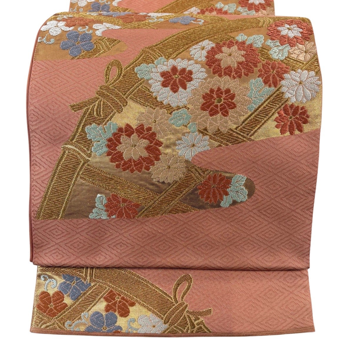 反物 秀品 付下げ 御所車 花鳥 金銀彩 サーモンピンク 正絹