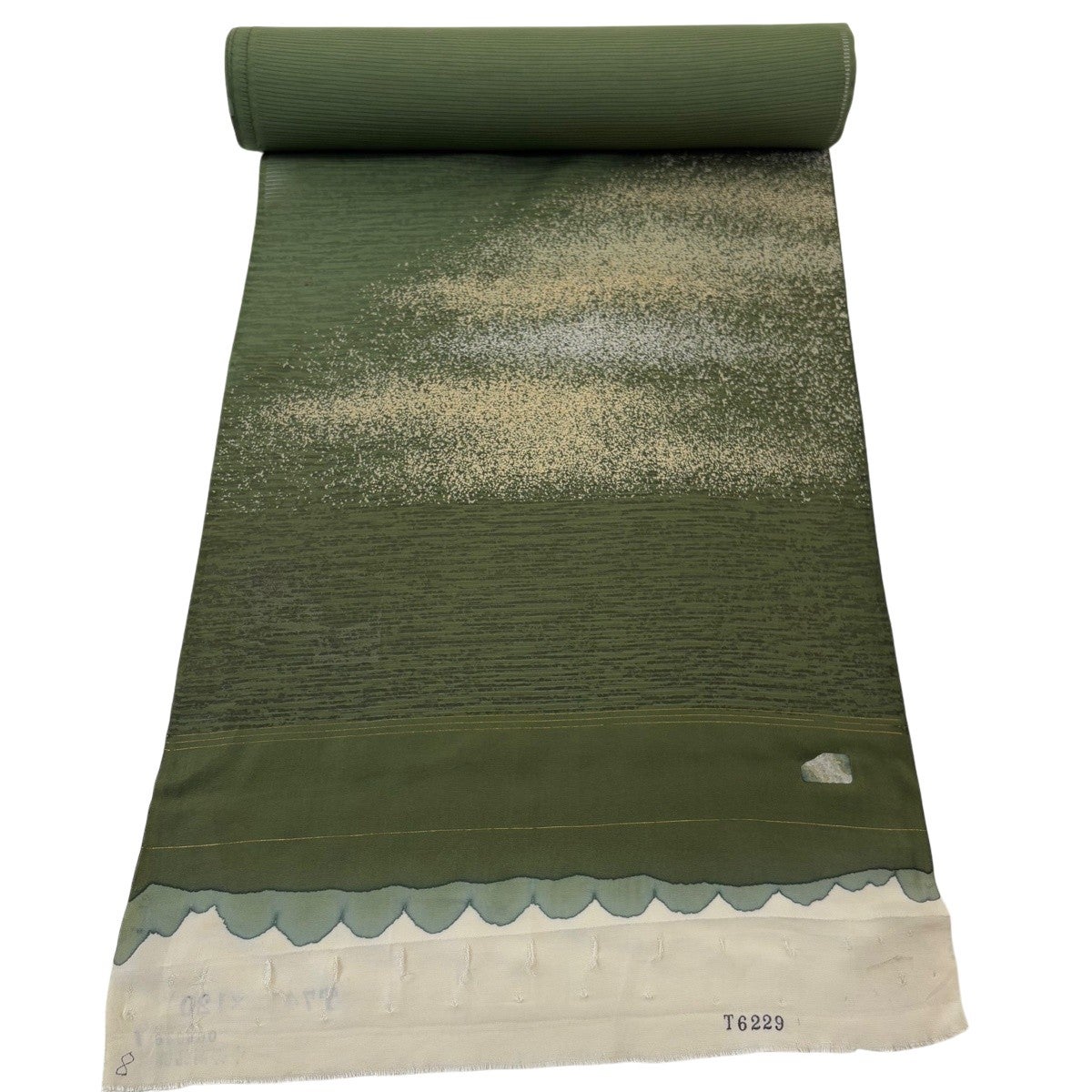反物 秀品 付下げ 絽 霞 幾何学 緑 正絹