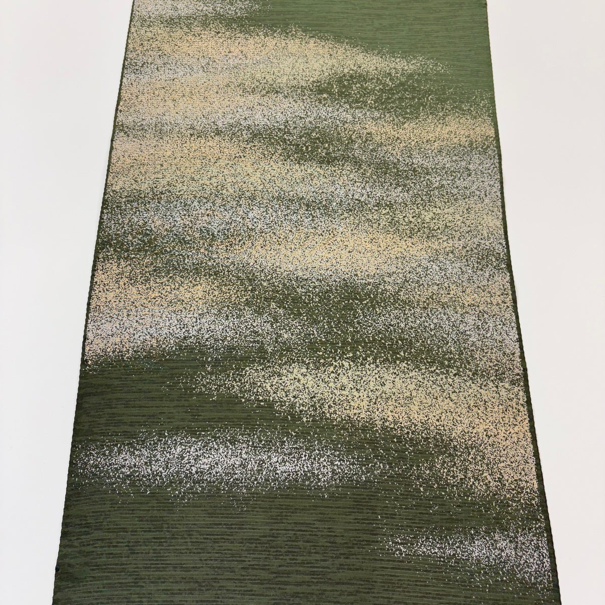 反物 秀品 付下げ 色紙 草花 金彩 ぼかし 茶緑色 正絹