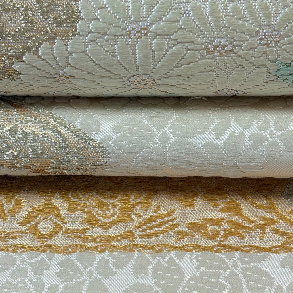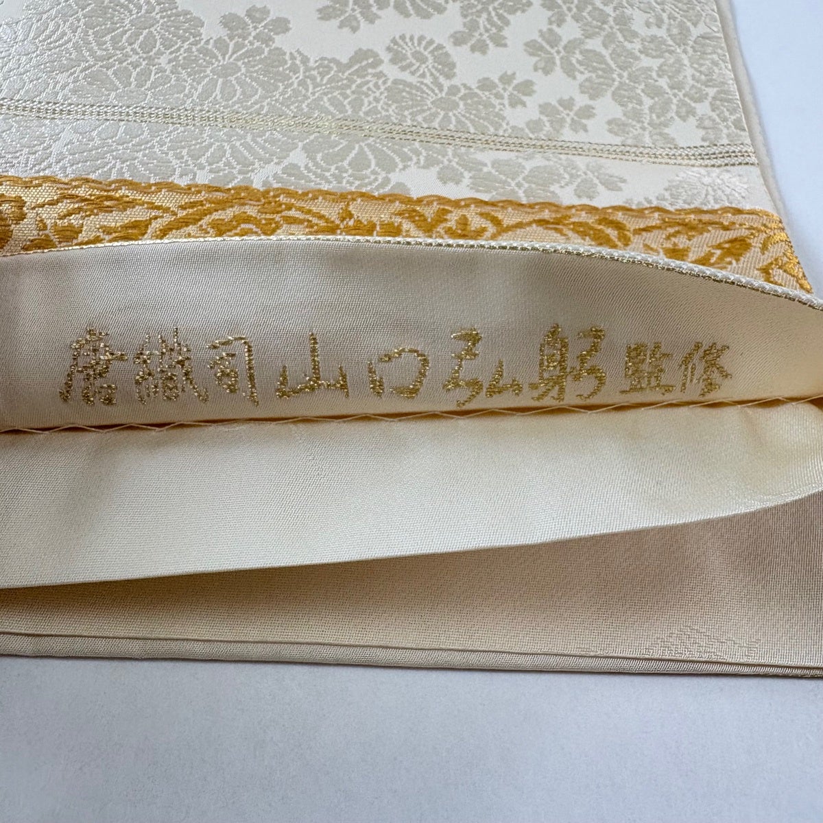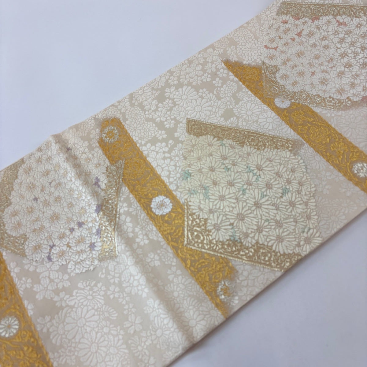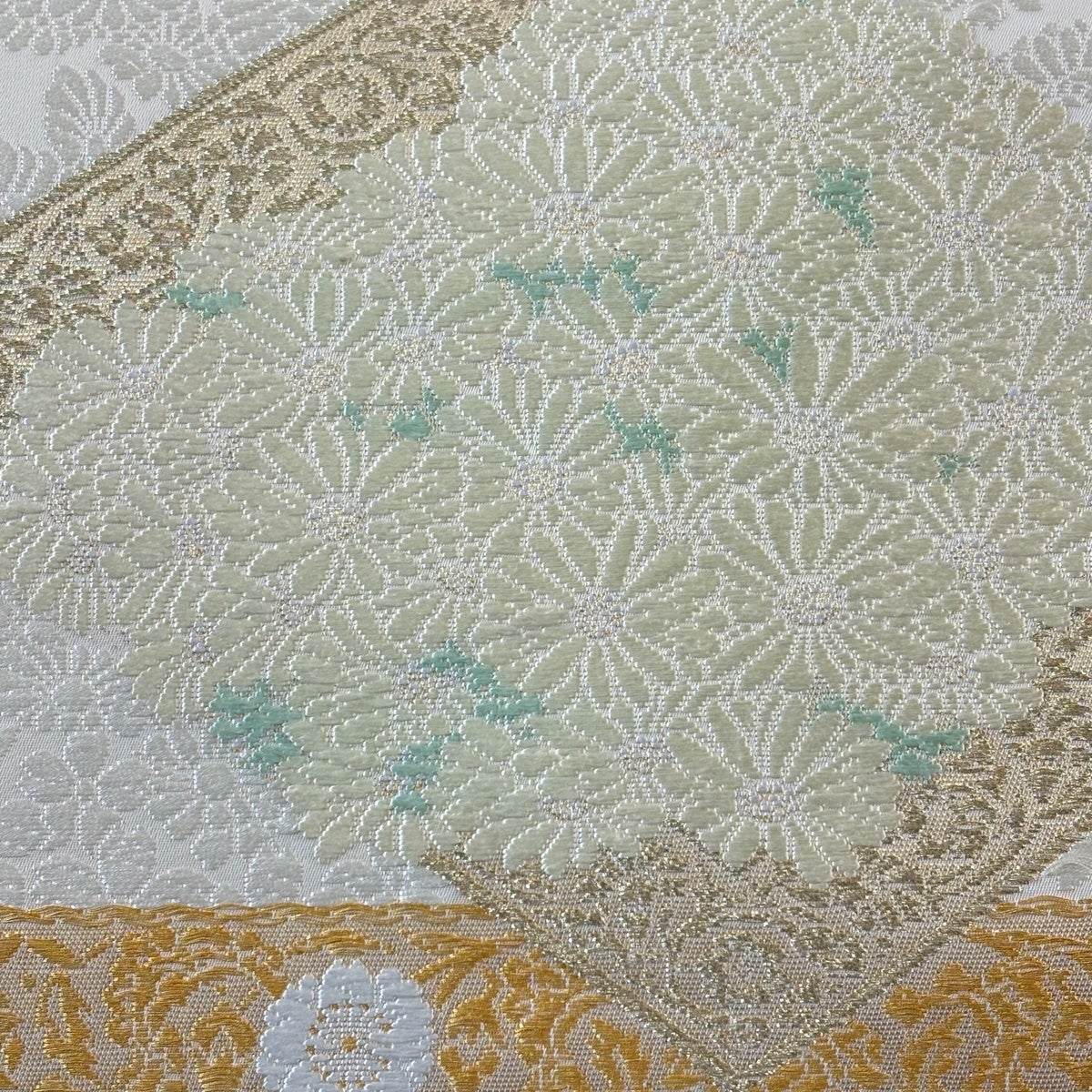 反物 秀品 付下げ 菊 刺繍 ベージュ 正絹