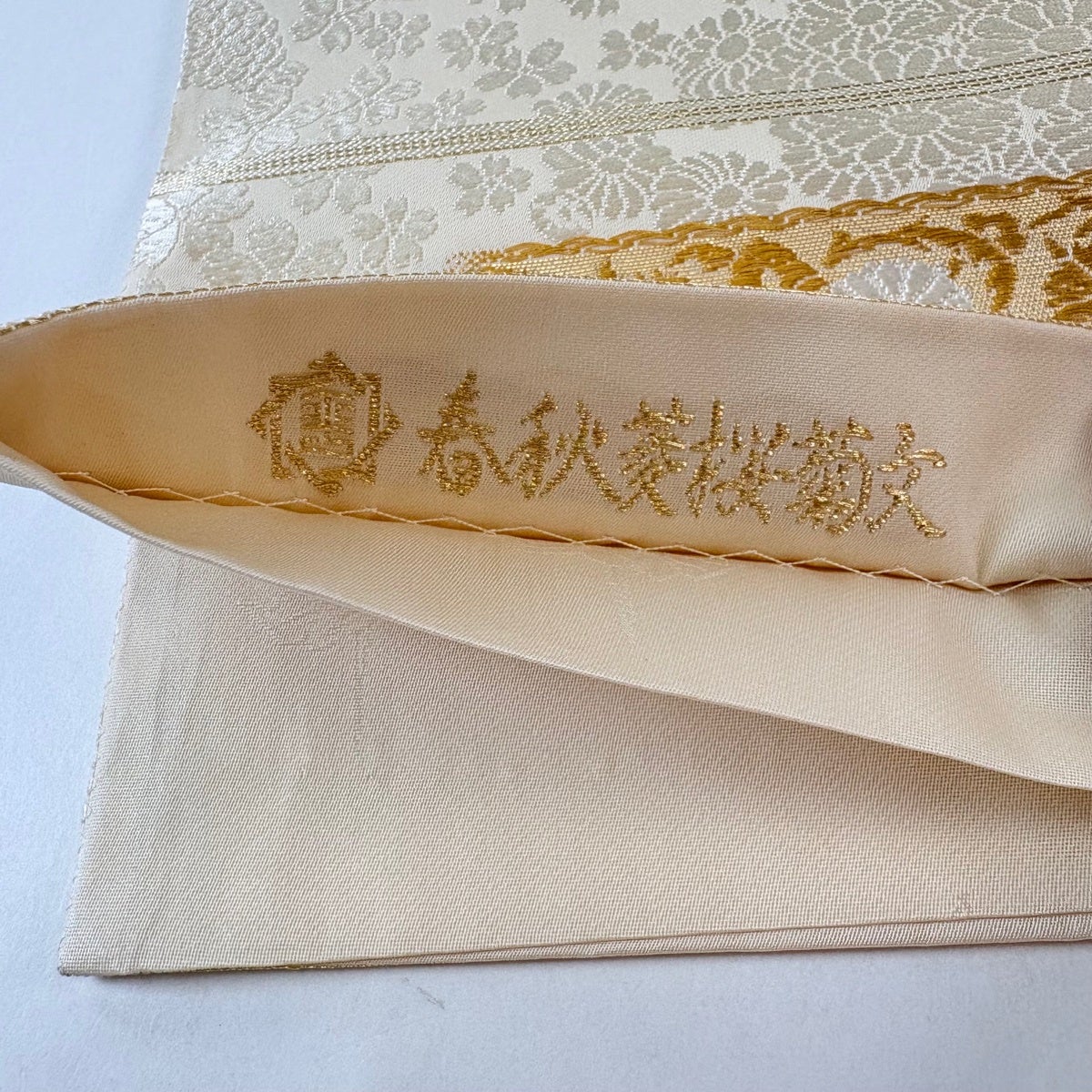 【美品】袋帯 秀品 落款あり 萬葉 関西仕立て 梅 草花 赤 全通 正絹