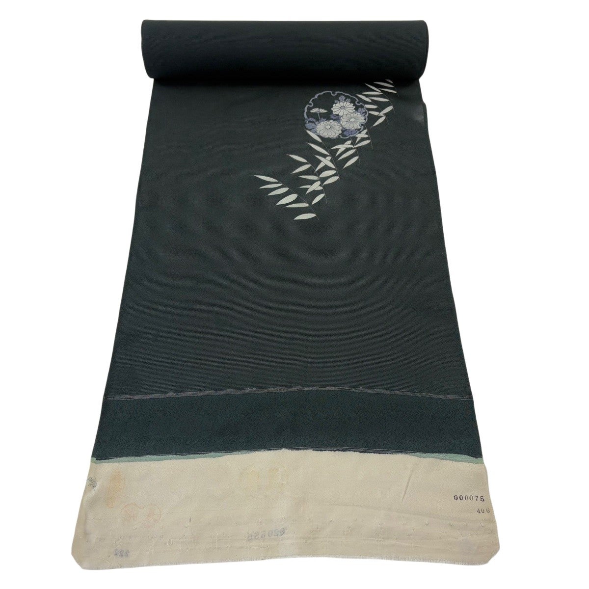 反物 秀品 付下げ 菊 草花 染め分け ぼかし 緑 正絹