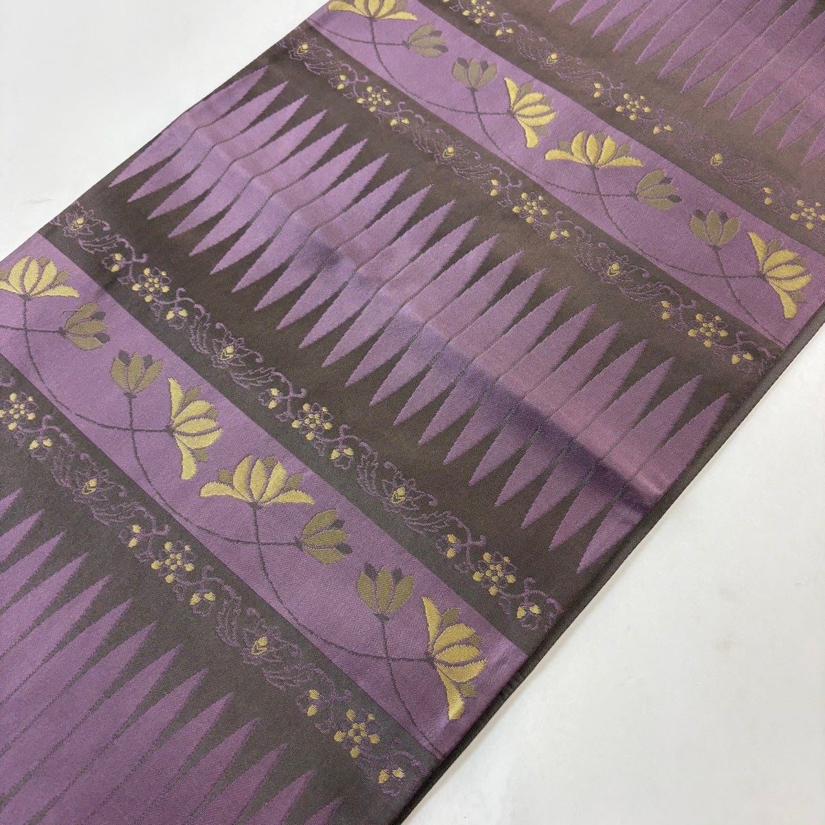 【美品】 袋帯 名品 華文 金糸 薄紫 六通 正絹