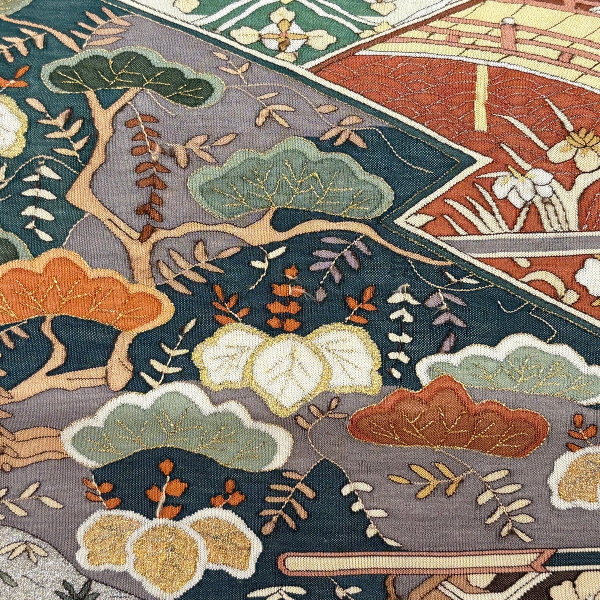 袋帯 秀品 花鳥 華文 金糸 箔 青緑 六通 正絹