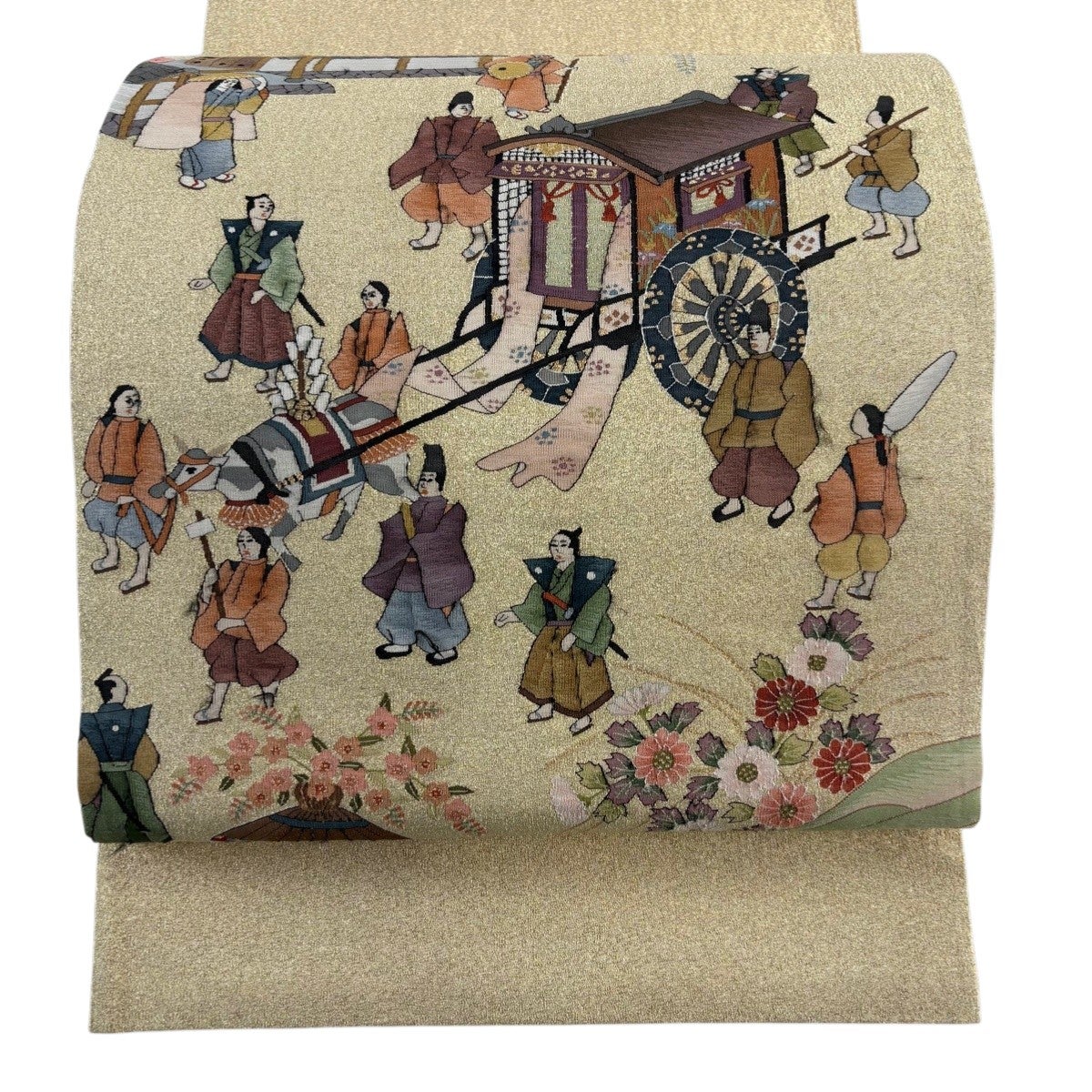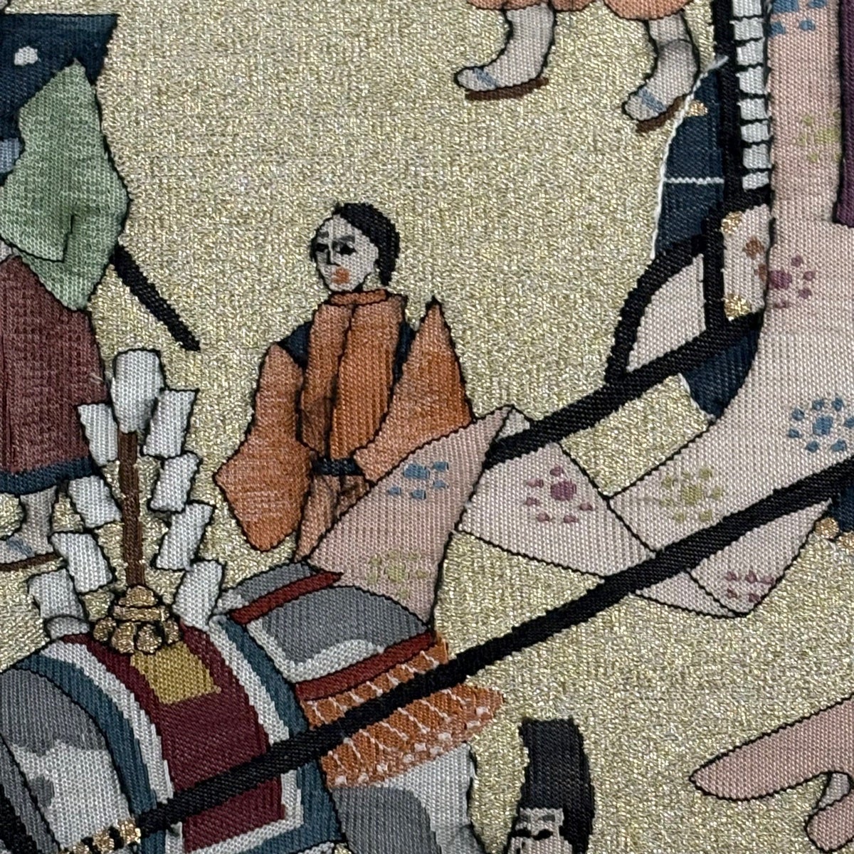 袋帯 秀品 草花 幾何学 箔 金糸 金色 六通 正絹
