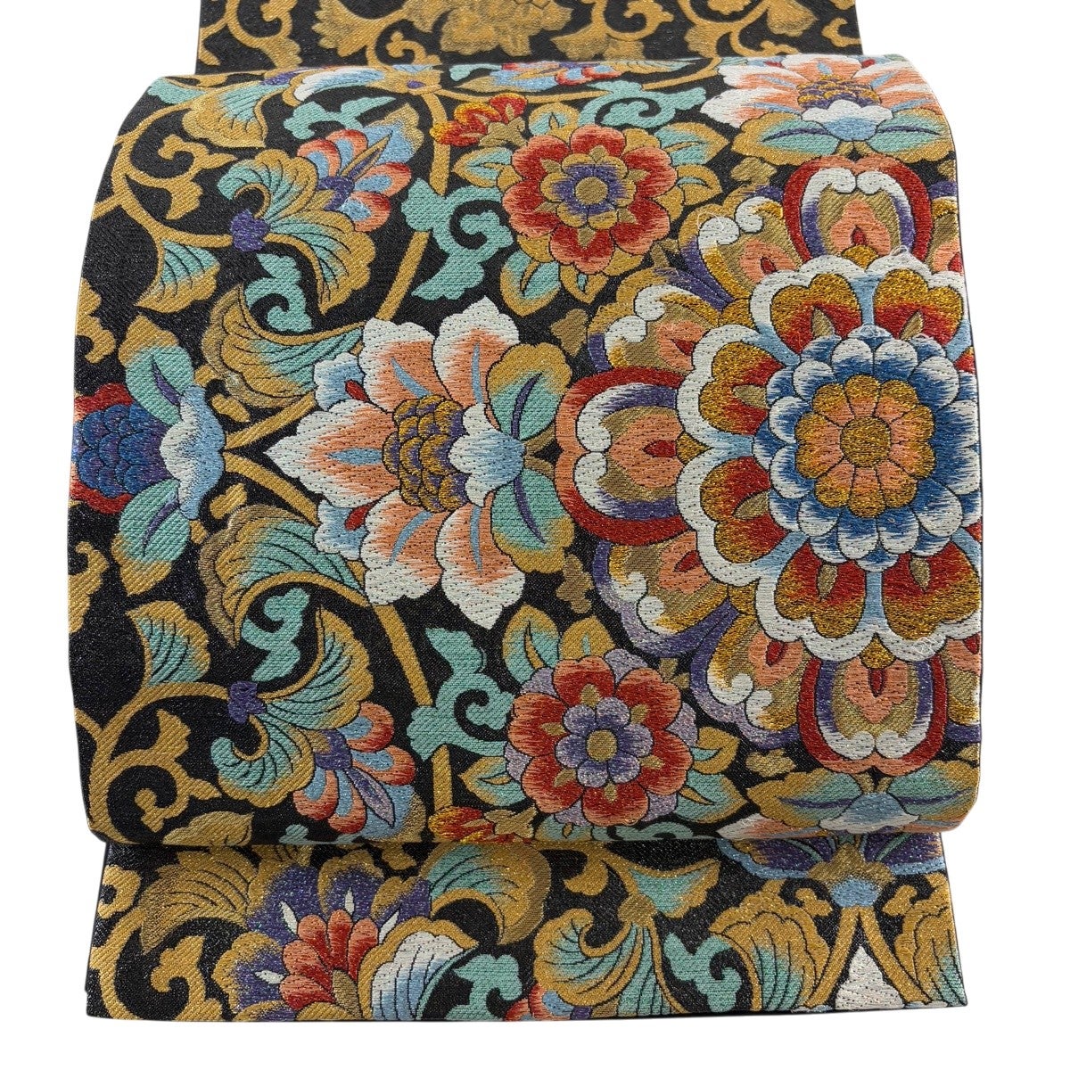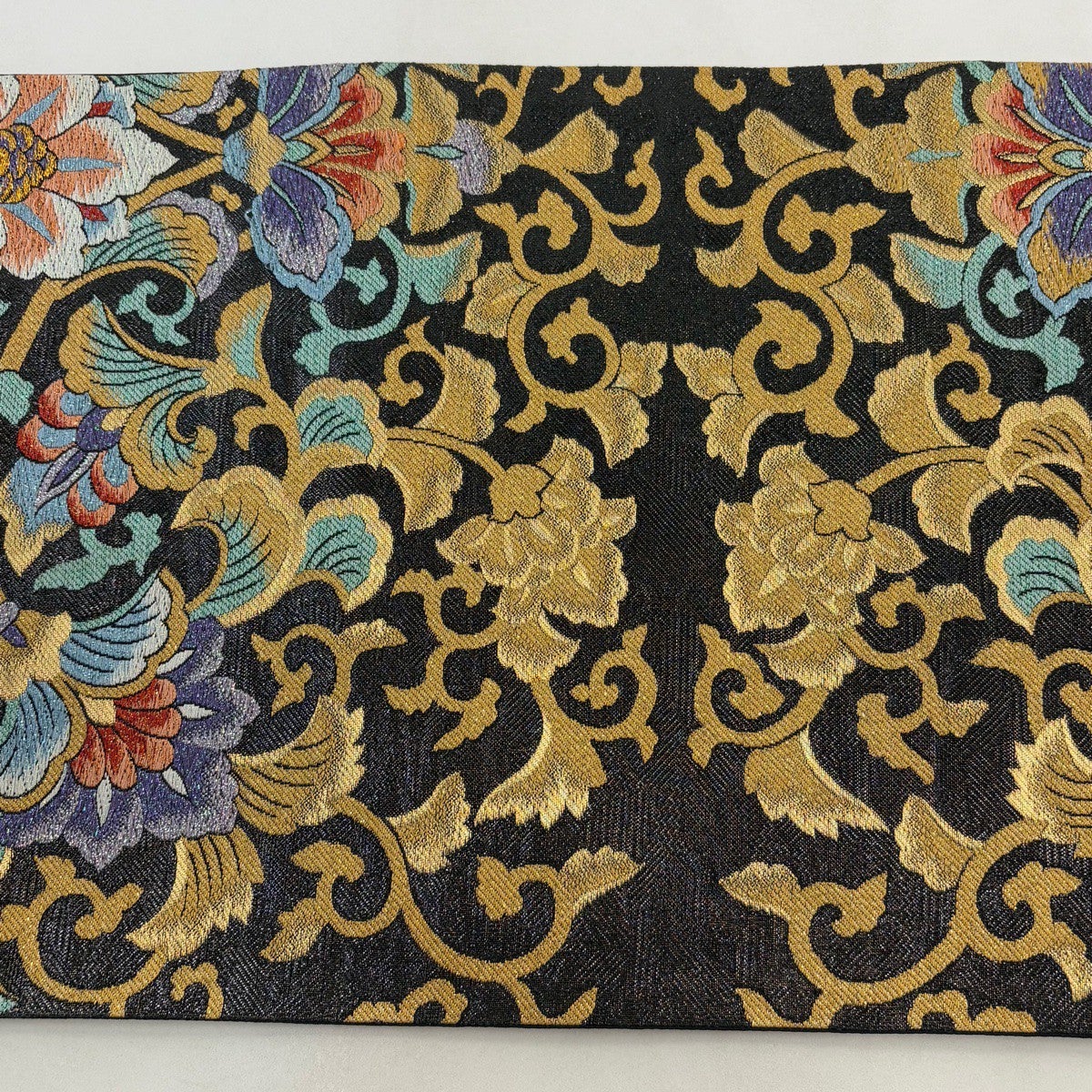 袋帯 秀品 華鳳 花唐草 唐織 箔 黒 六通 正絹