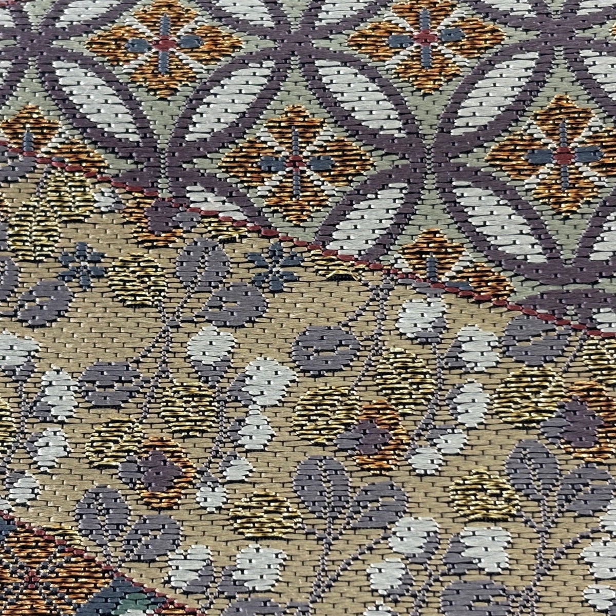 【美品】 袋帯 名品 幾何学 金銀糸 灰紫 六通 正絹