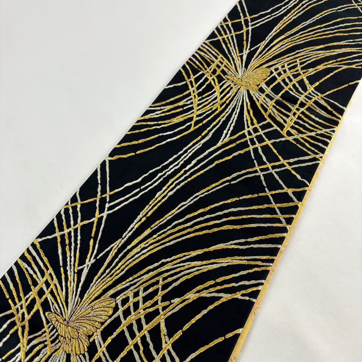 【美品】 袋帯 秀品 松 蝶 金糸 箔 金色 六通 正絹