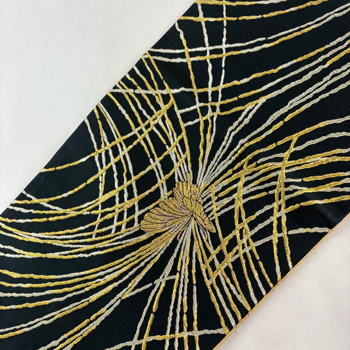 【美品】 袋帯 秀品 幾何学 金銀糸 灰白 六通 正絹