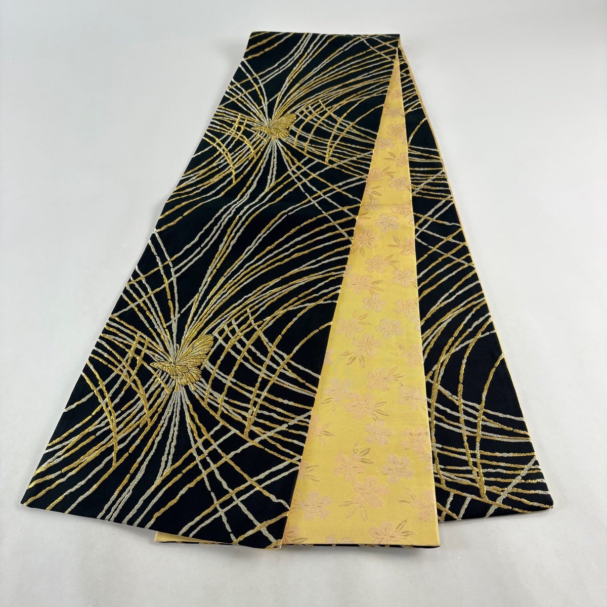 【美品】 袋帯 名品 草花 金糸 箔 薄黄 六通 正絹