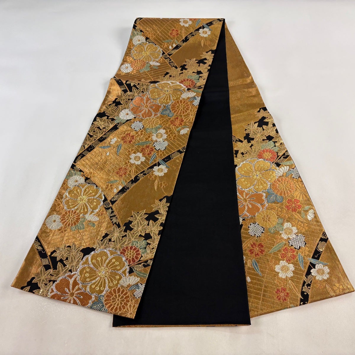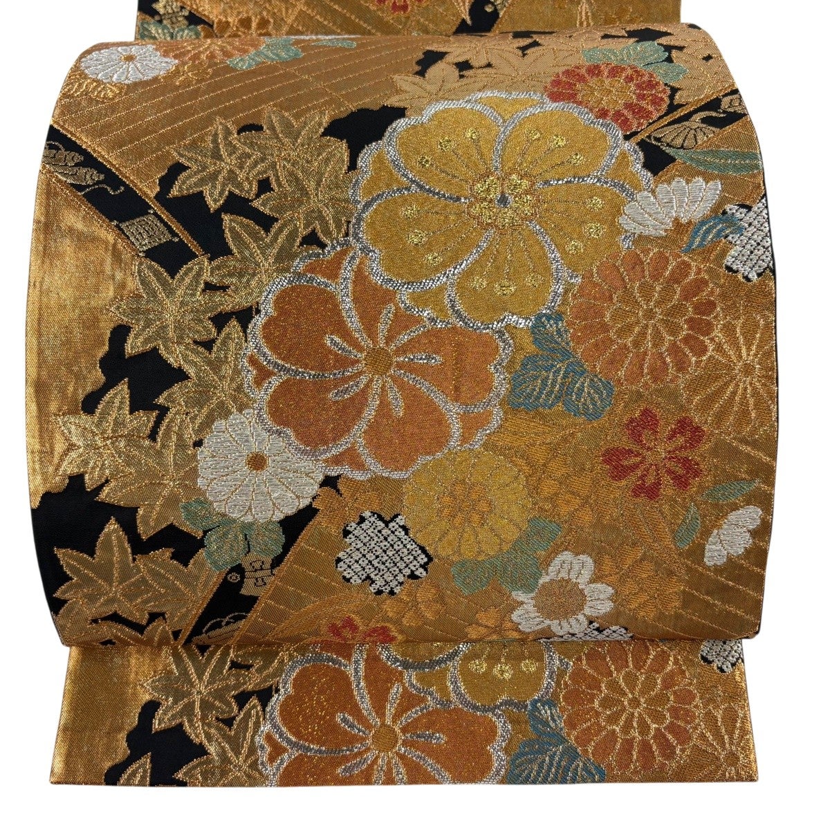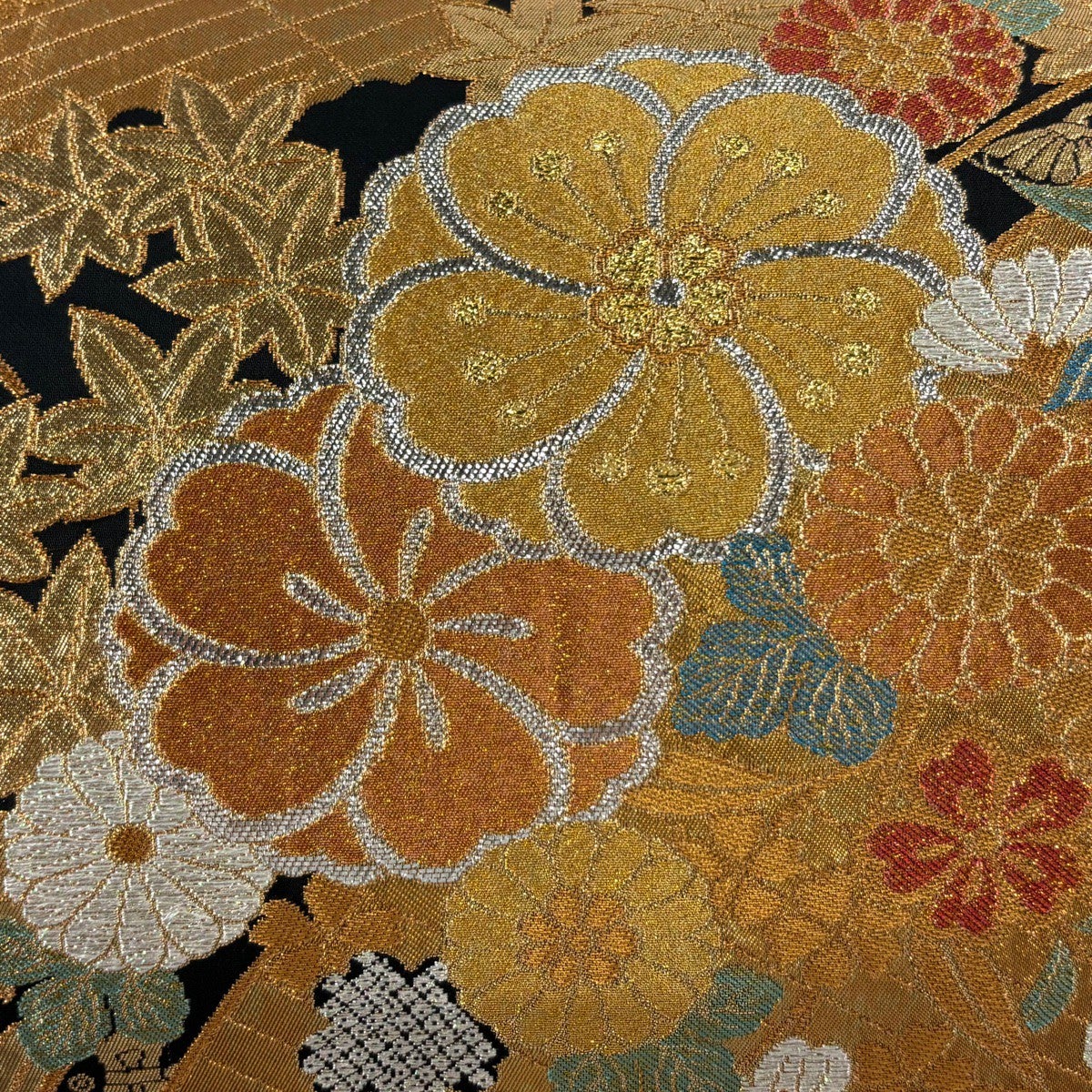 【美品】 袋帯 秀品 枝花 金銀糸 箔 黒 六通 正絹