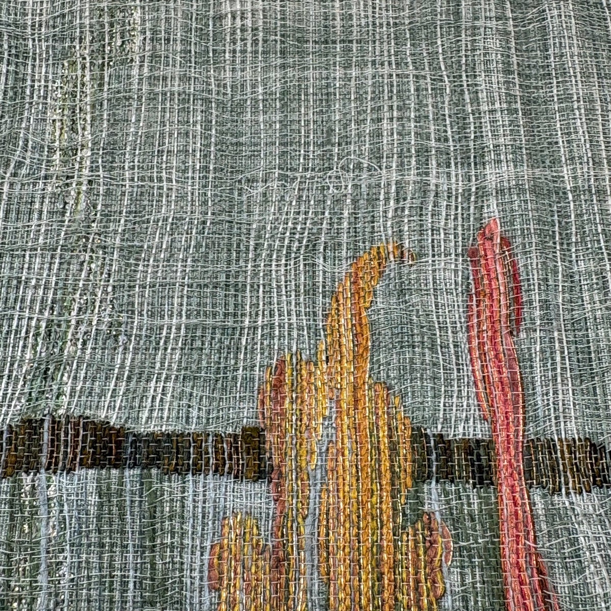 袋帯 秀品 紬地 露芝 霞 金彩 灰緑 お太鼓柄 正絹