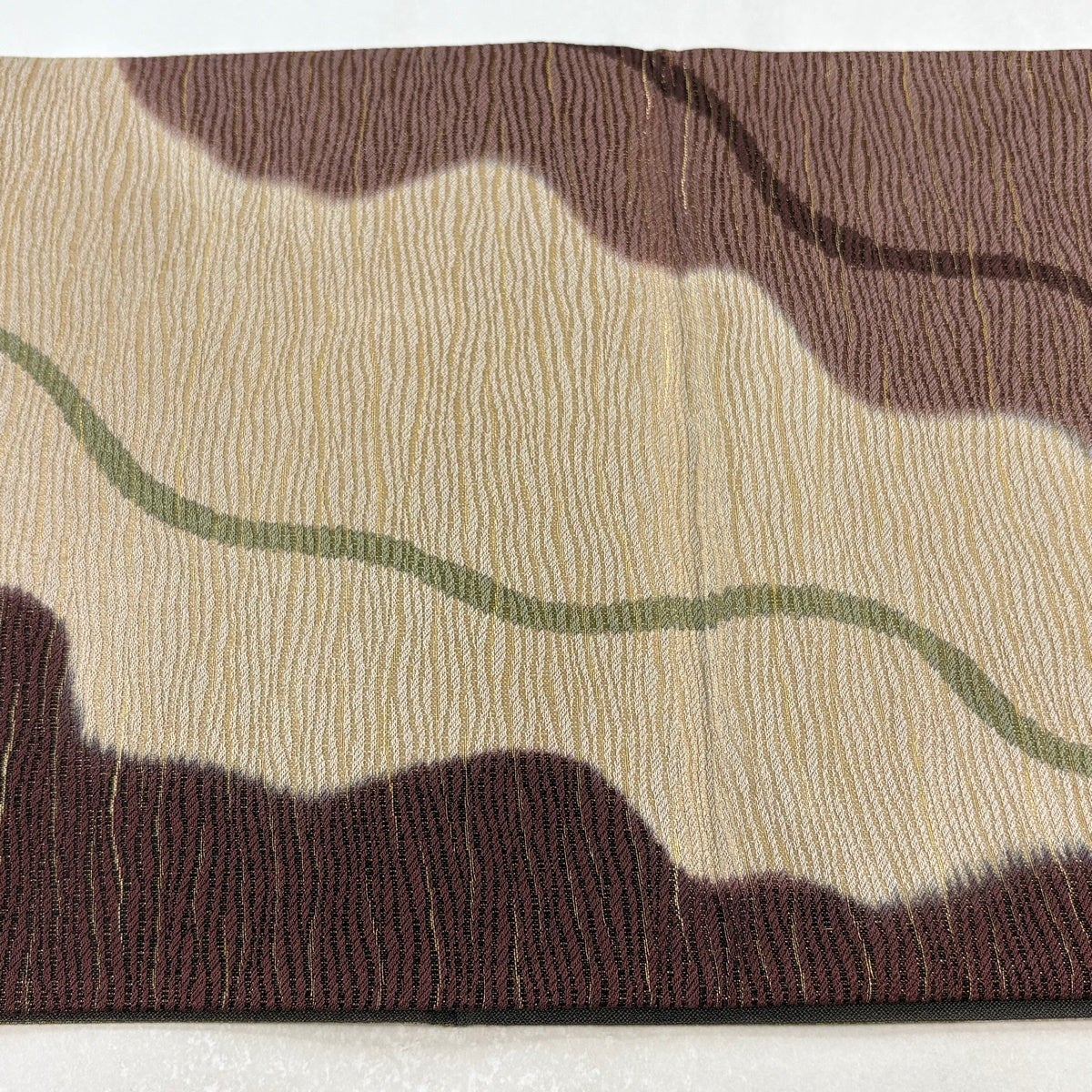 袋帯 秀品 幾何学 金糸 箔 ベージュ 全通 正絹