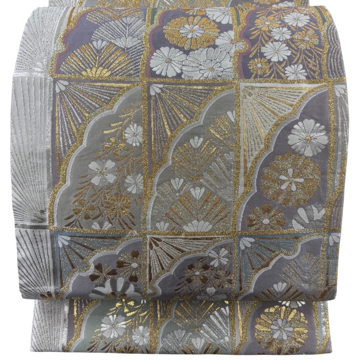 袋帯 名品 菊 若松 箔 薄紫 六通 正絹