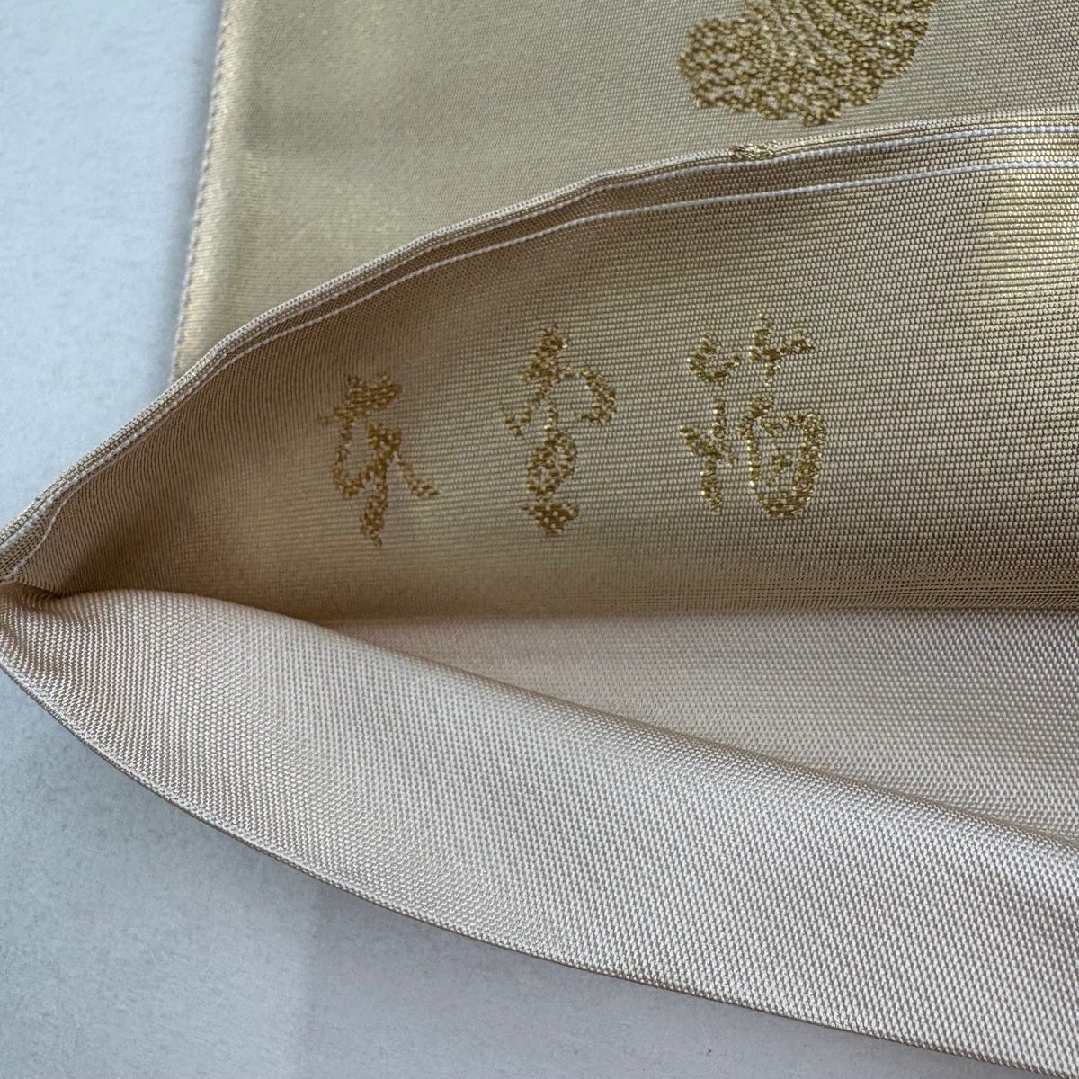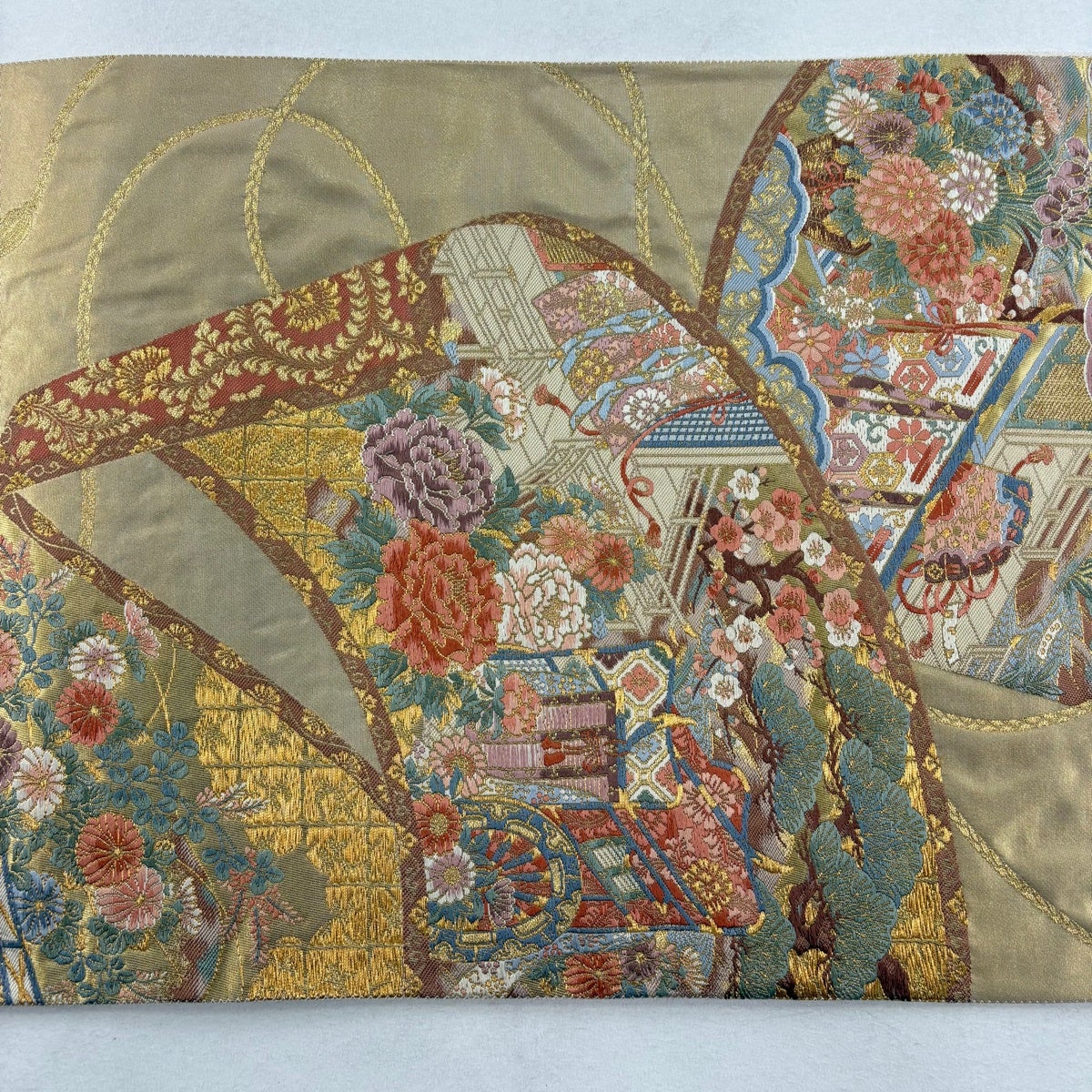袋帯 秀品 菊 桐 唐織 箔 ベージュ 六通 正絹