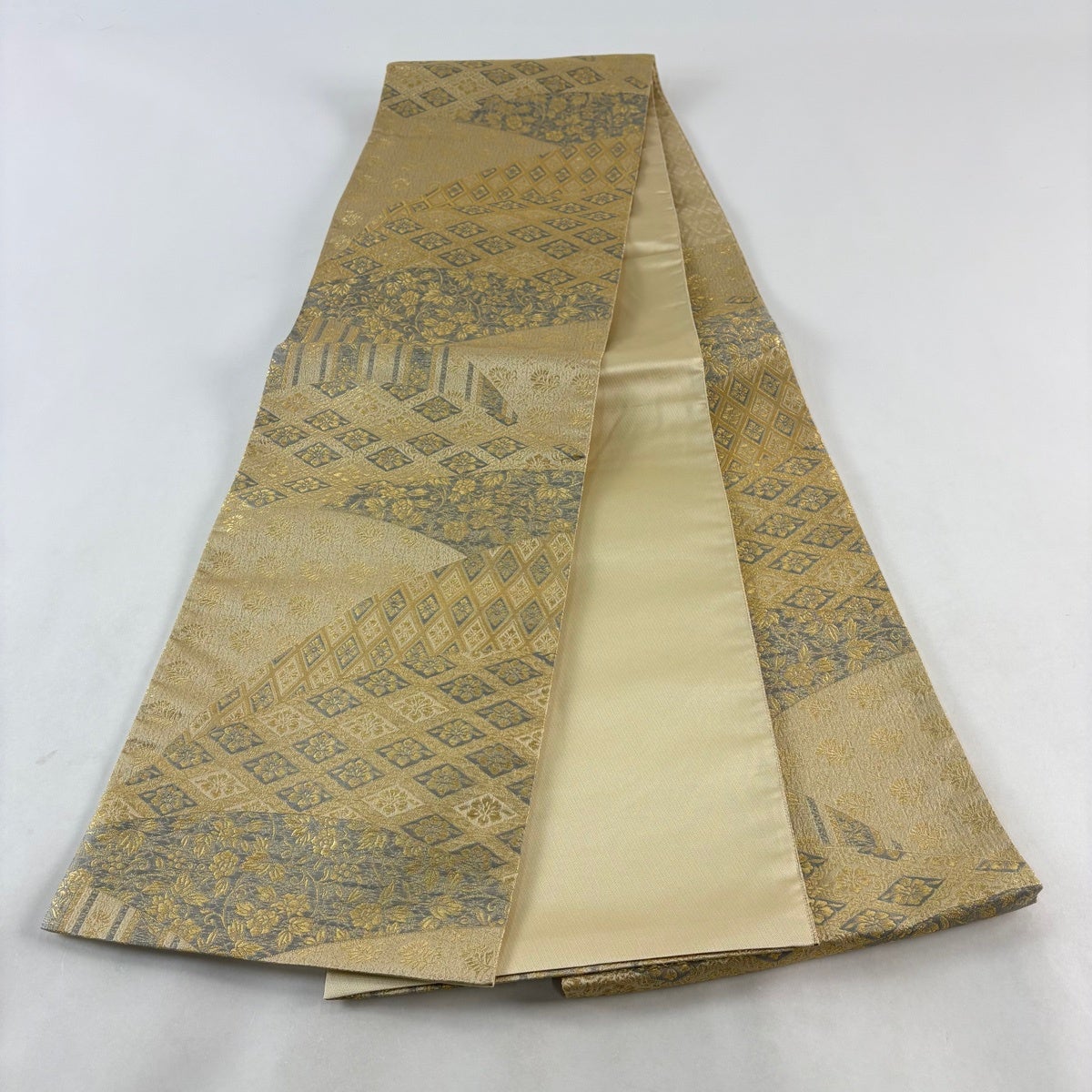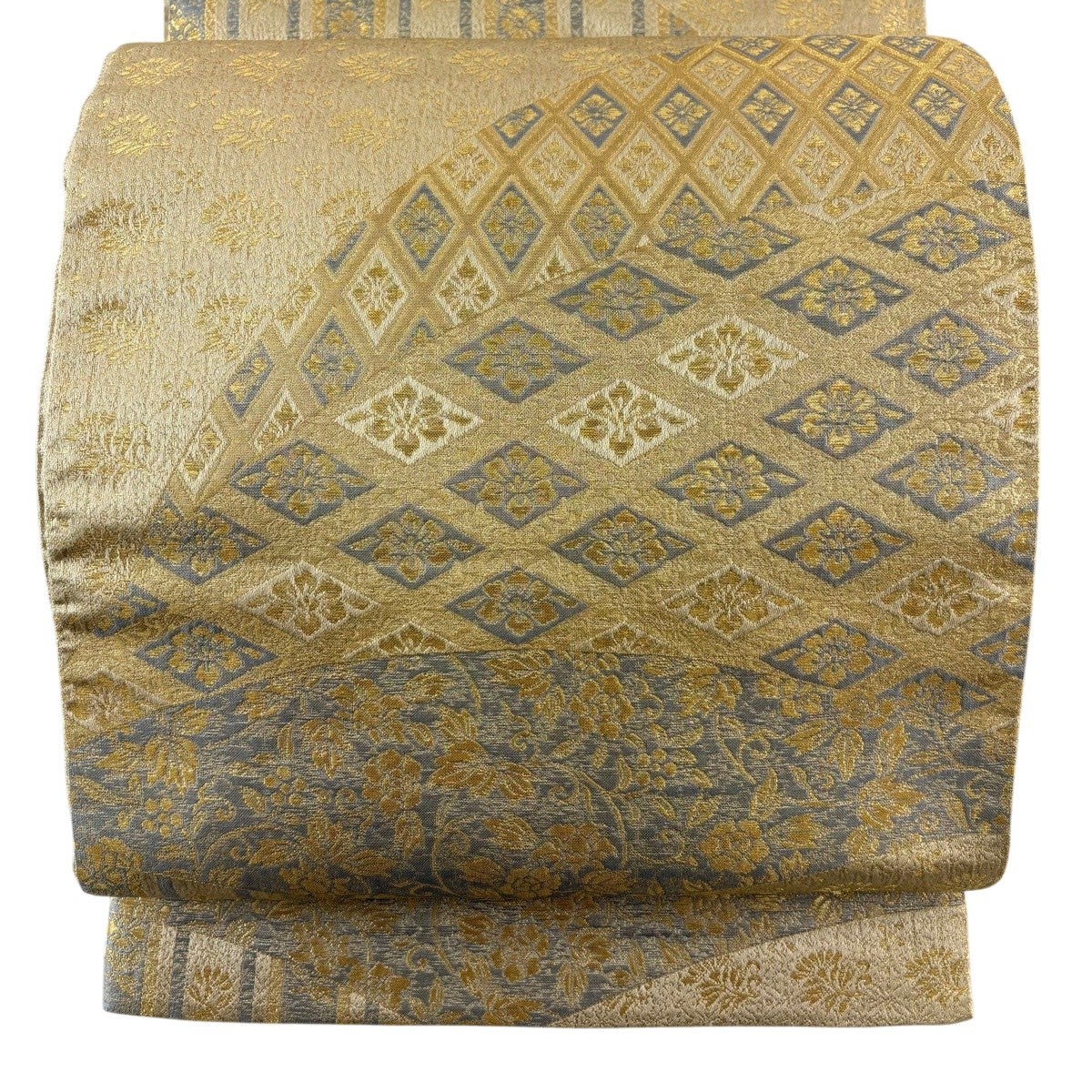 袋帯 秀品 華文 草花 箔 金糸 ベージュ 六通 正絹