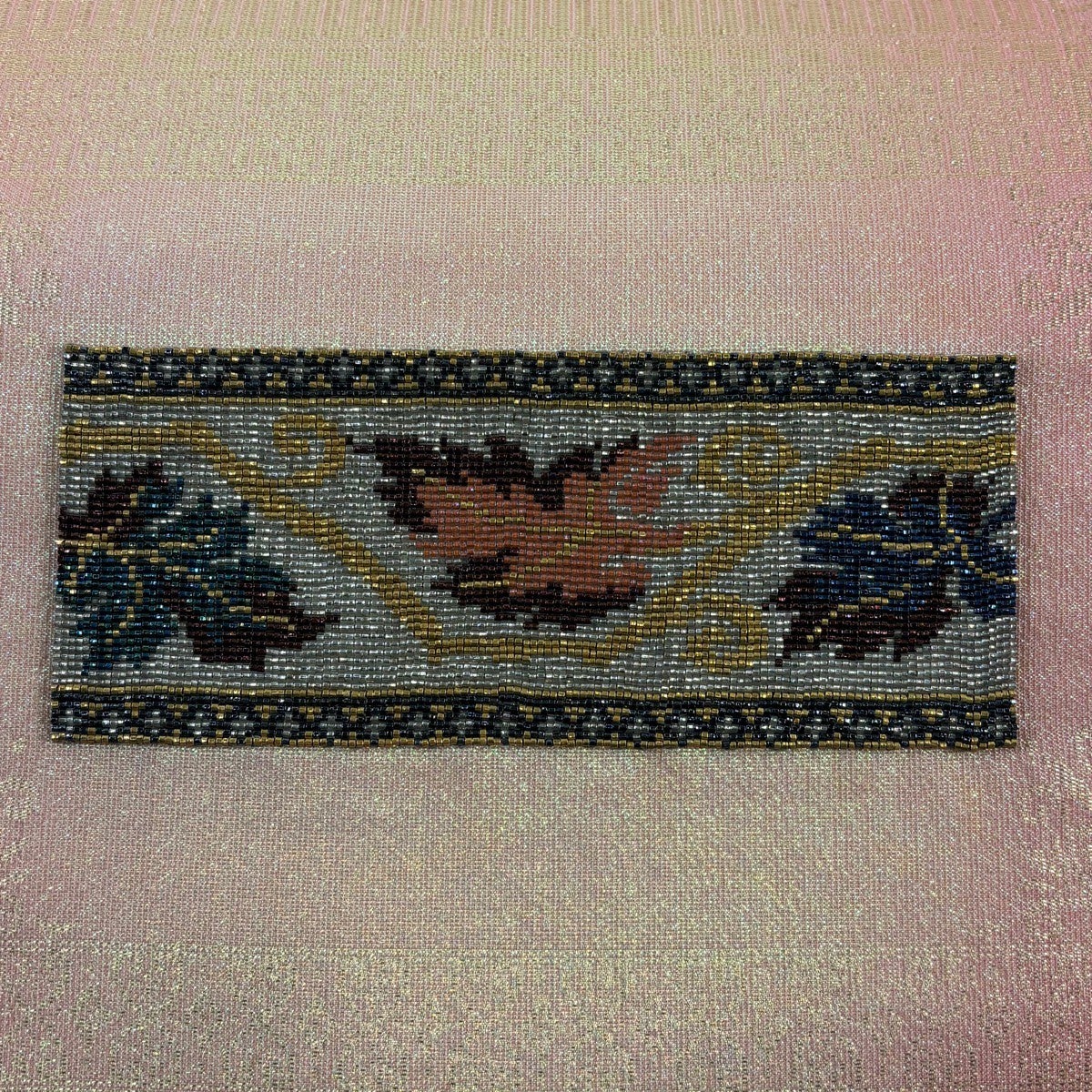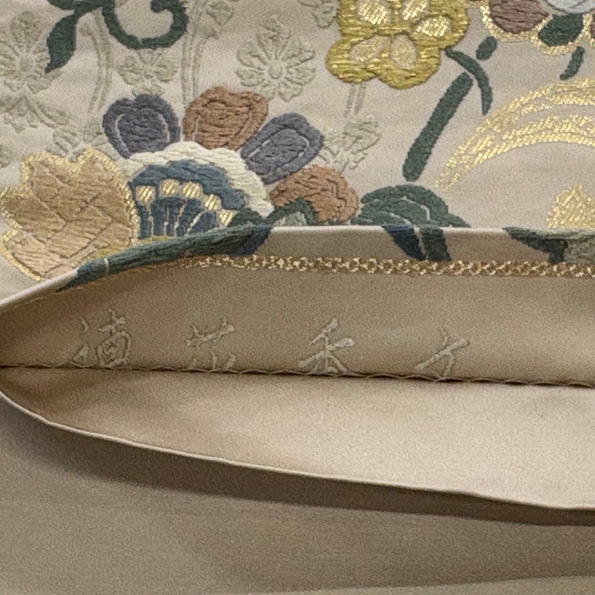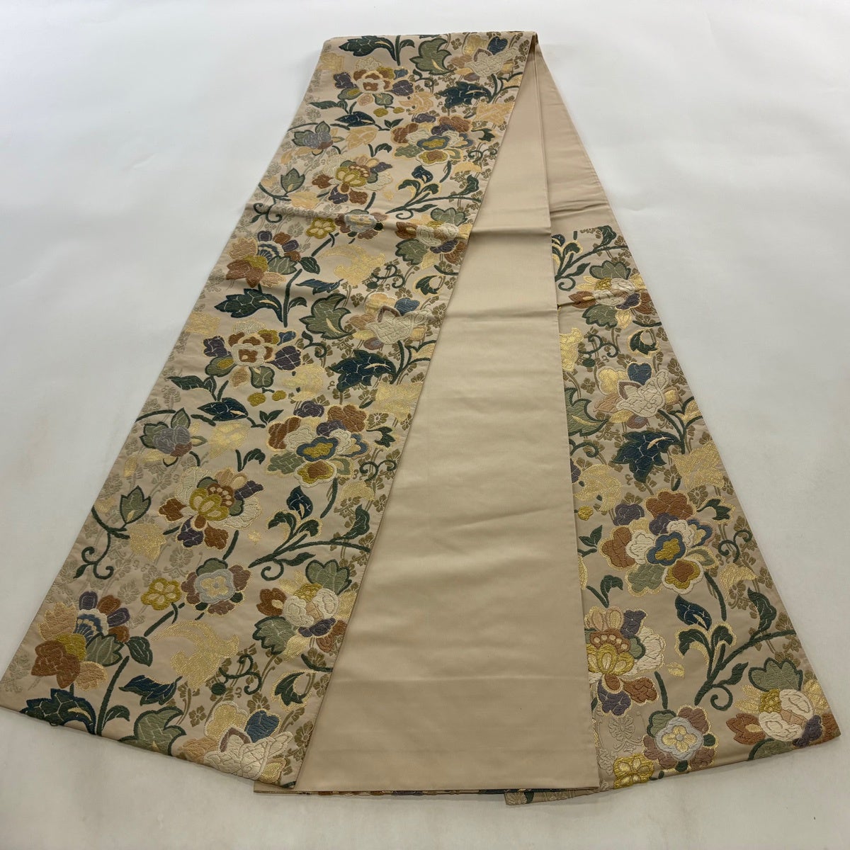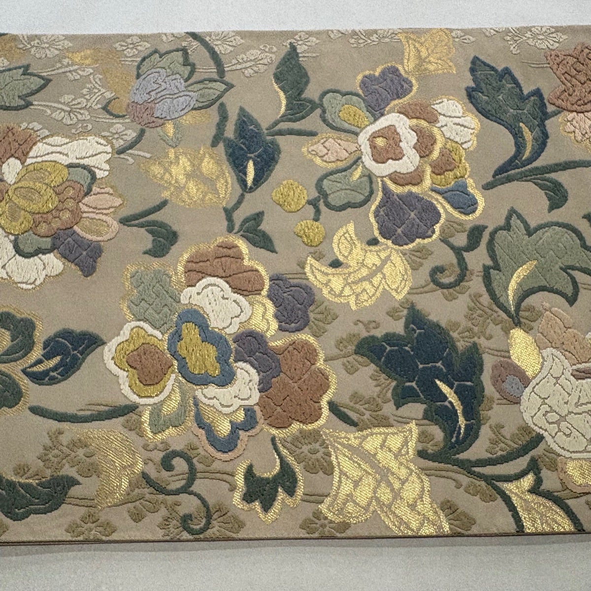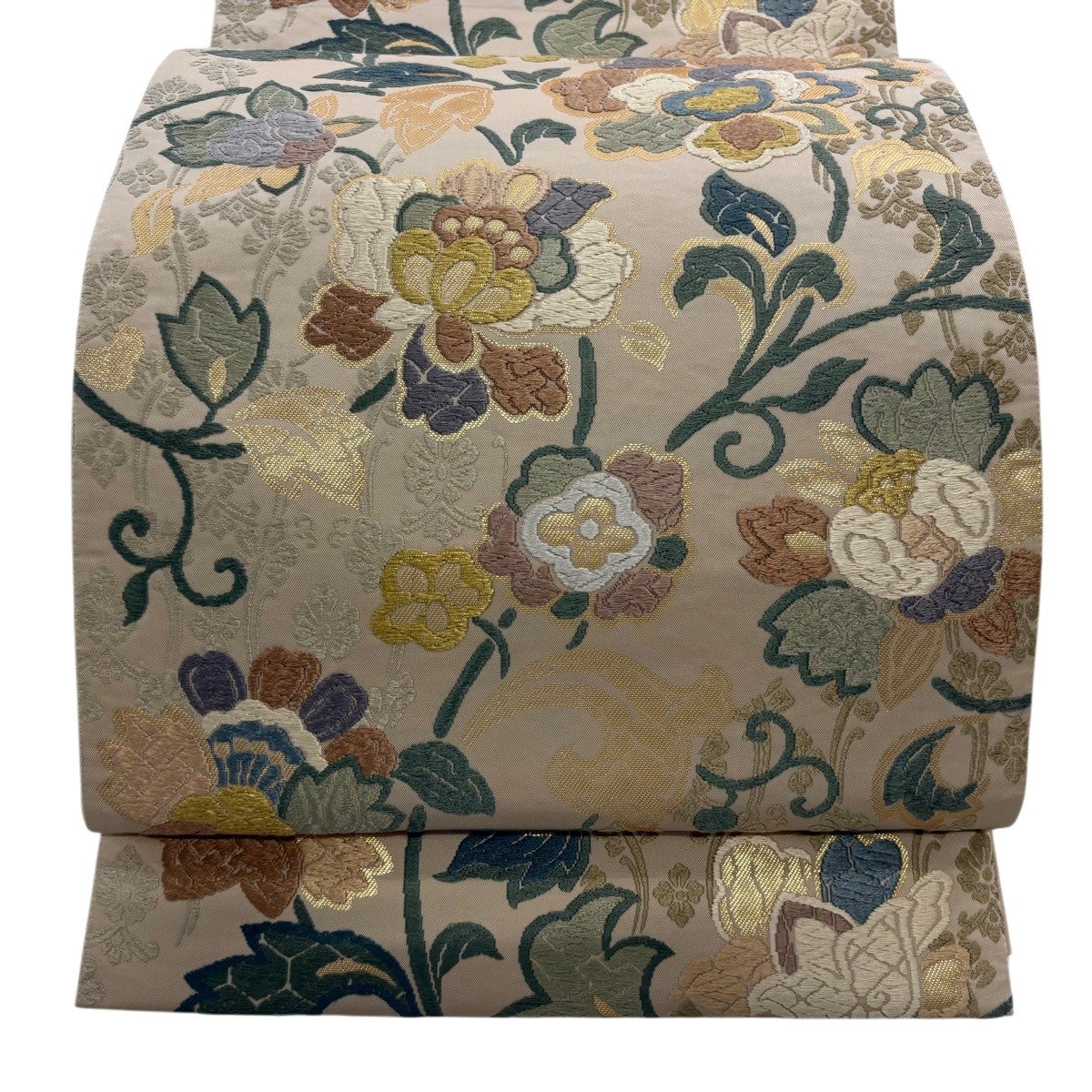 袋帯 名品 草花 箔 ベージュ 六通 正絹