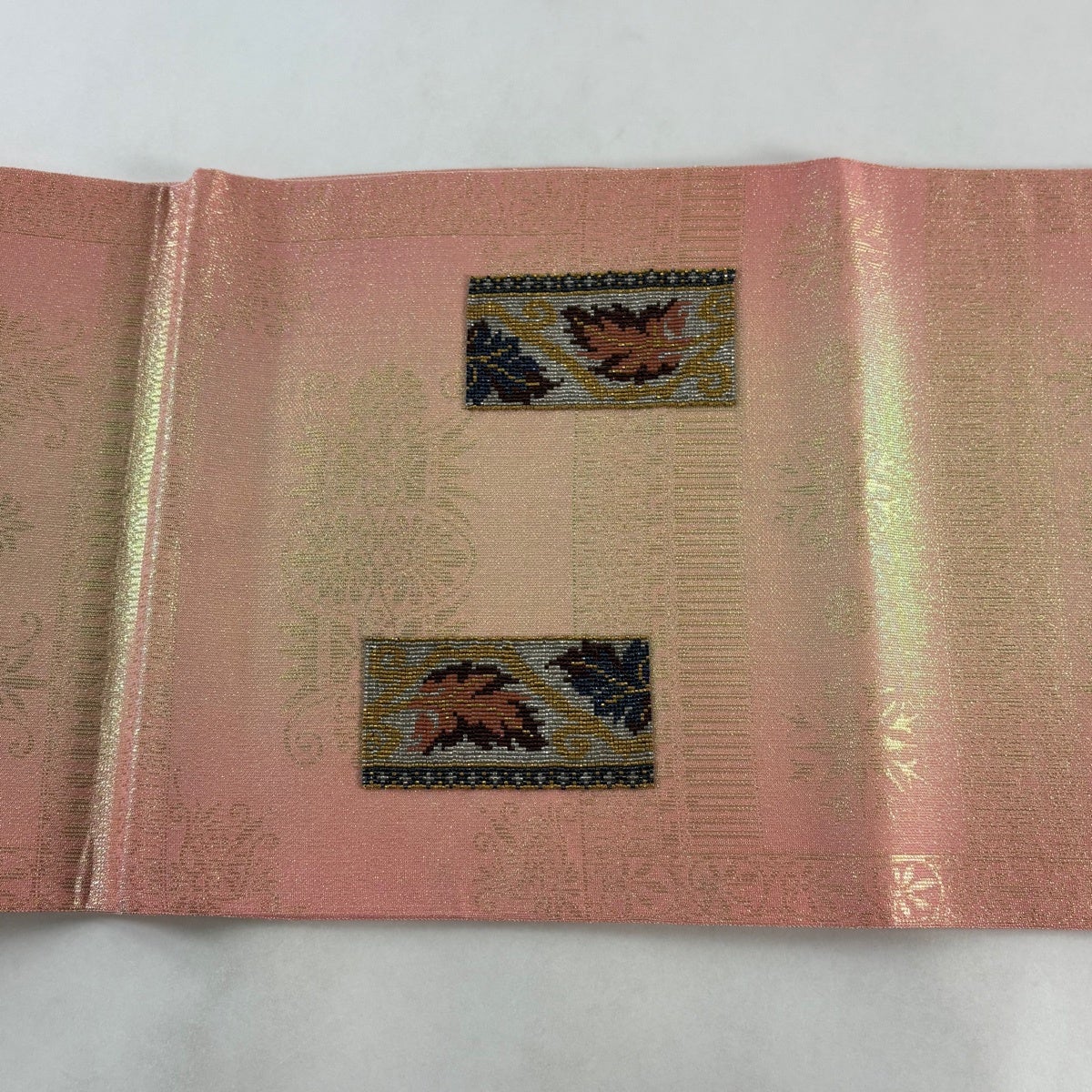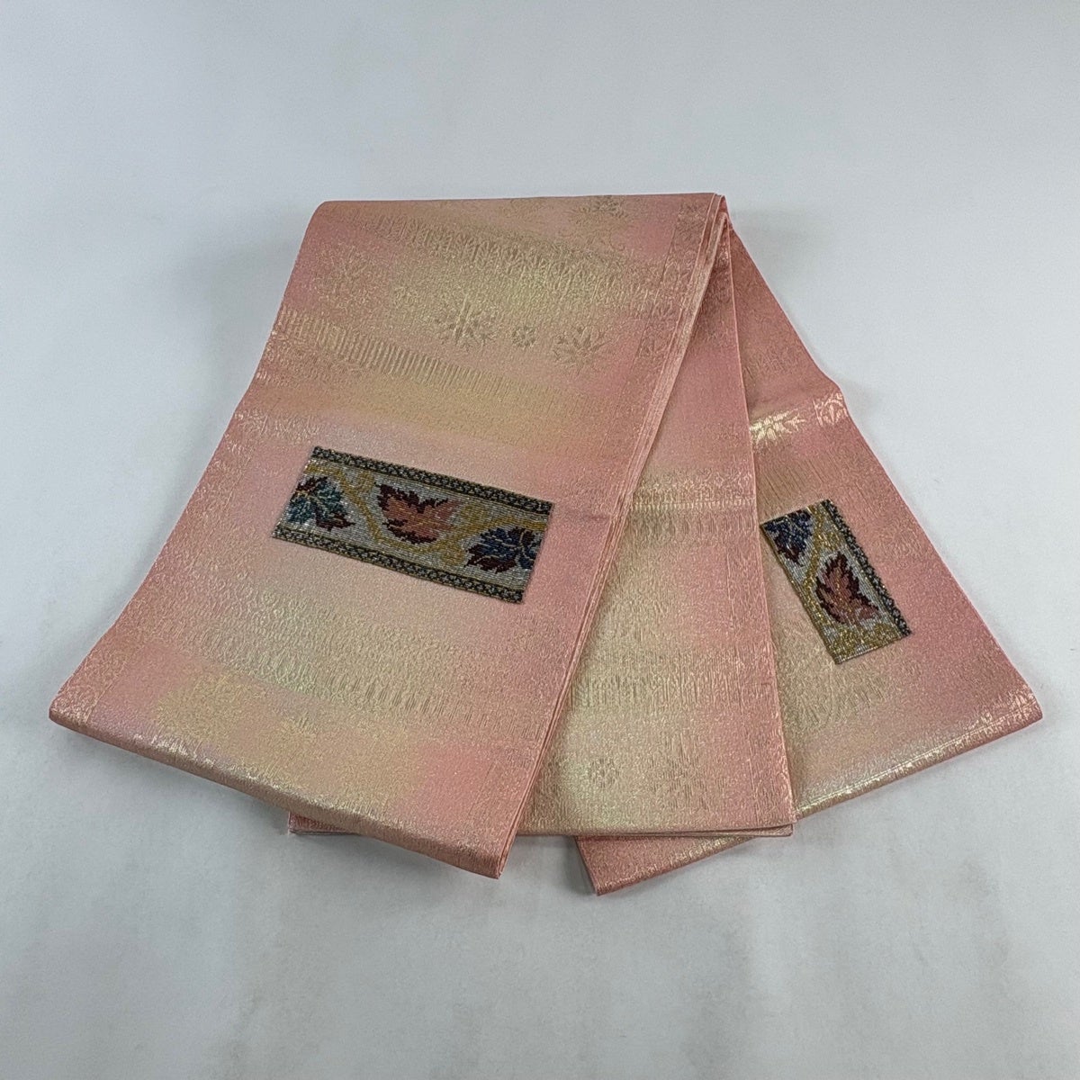 袋帯 秀品 唐草 箔 ピンク お太鼓柄 正絹