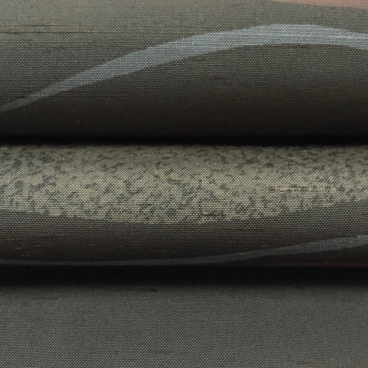 袋帯 秀品 平安織苑 幾何学模様 箔 ぼかし 灰緑 六通 正絹