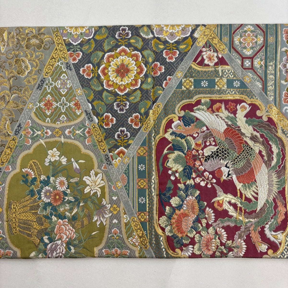 【美品】 袋帯 秀品 色紙 鳳凰 金糸 箔 焦茶色 六通 正絹