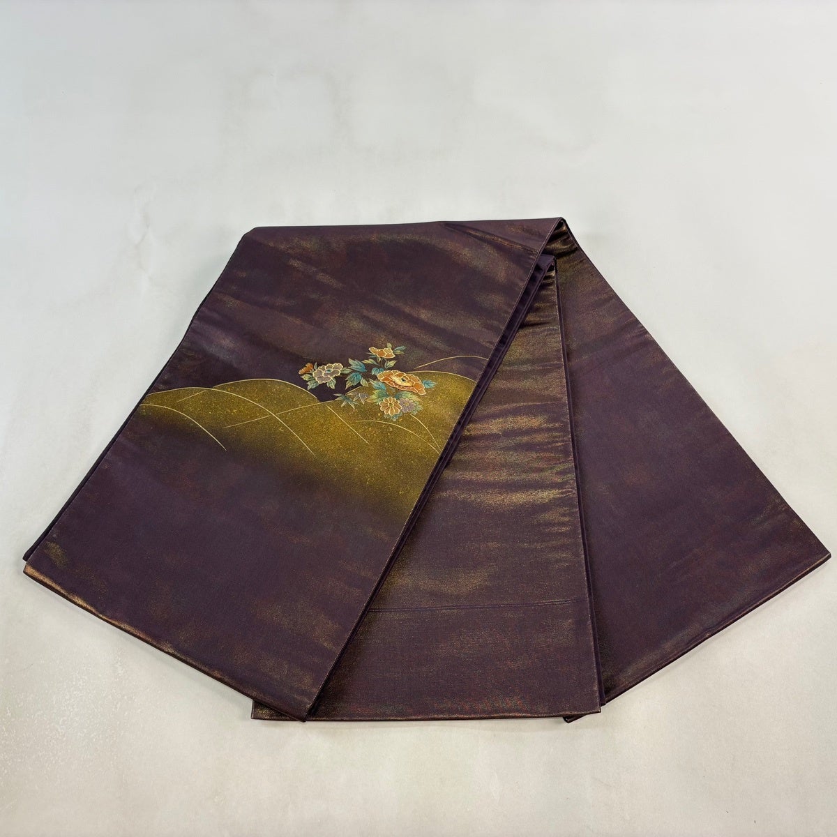 袋帯 秀品 短冊 草花 金糸 箔 金色 六通 正絹