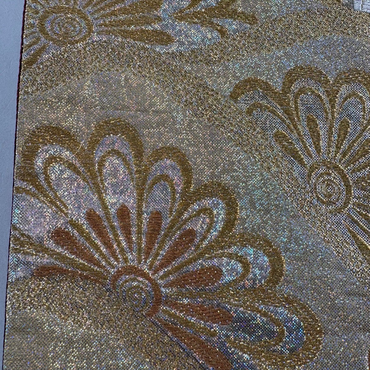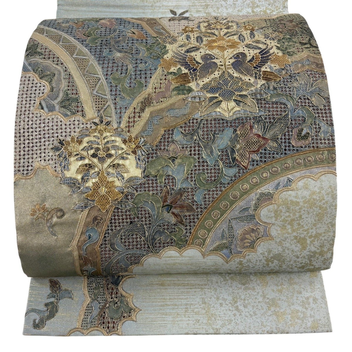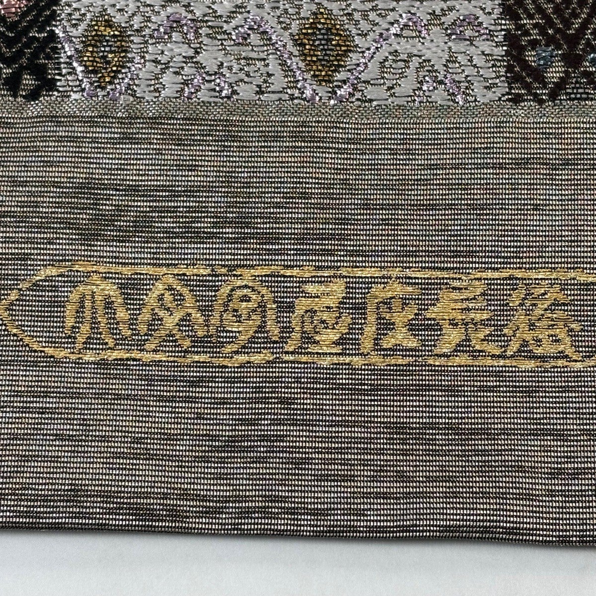 【美品】 袋帯 秀品 彩織 蜀江華文 草花 金糸 箔 灰色 六通 正絹