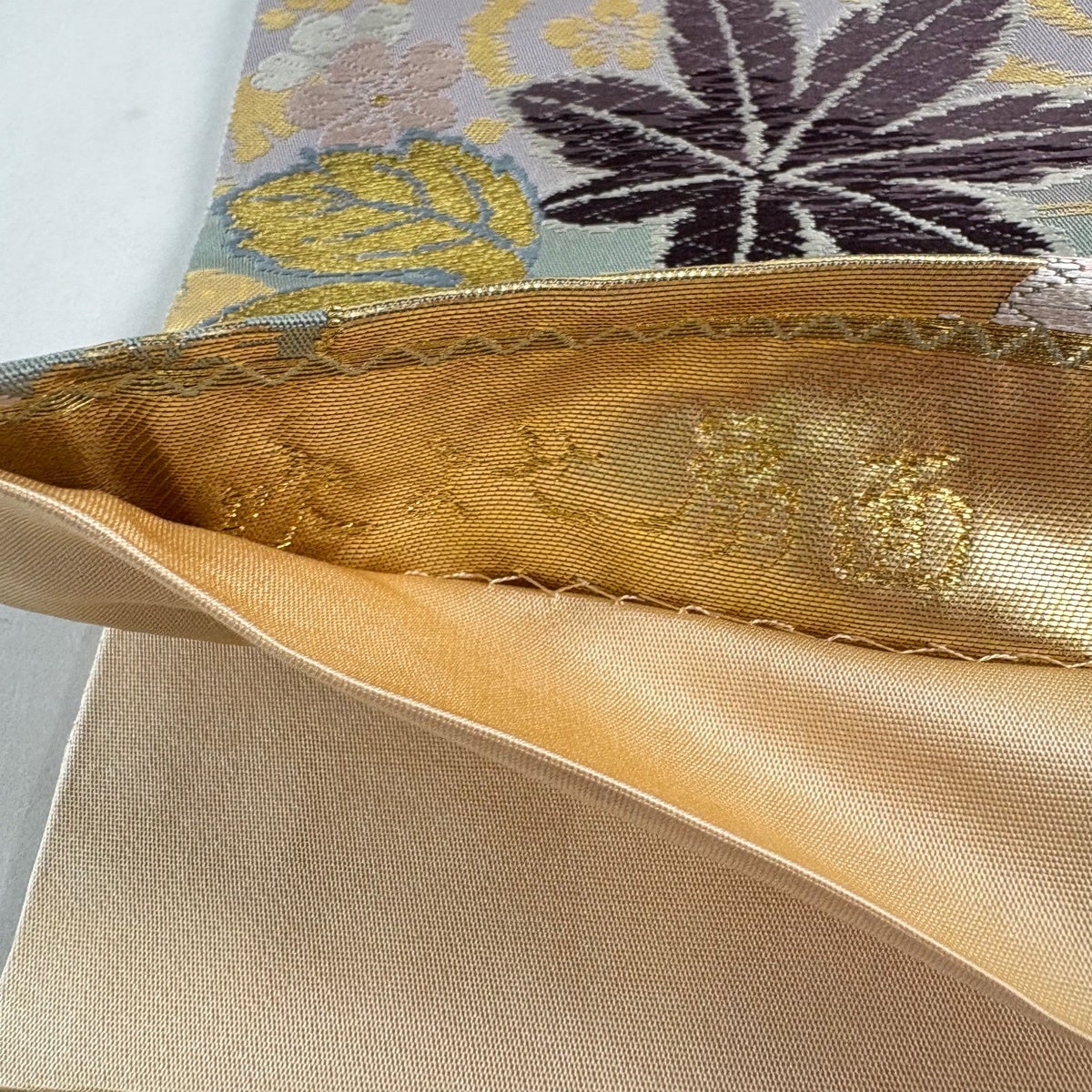 【美品】 袋帯 名品 江戸琳派 色紙 草花 金糸 箔 灰紫 六通 正絹