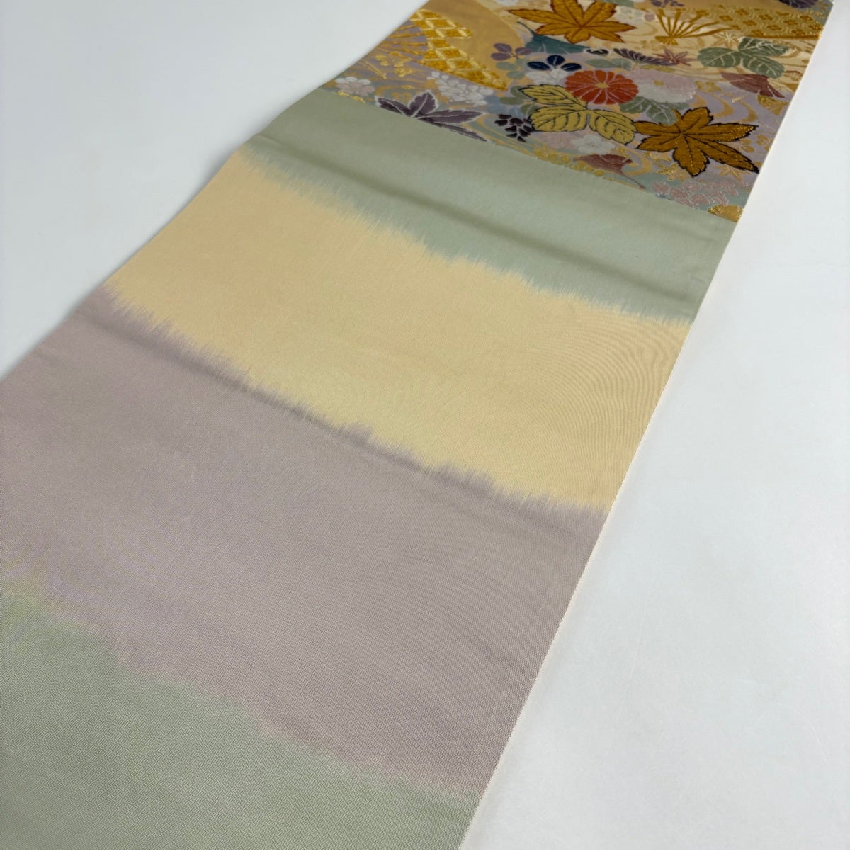 【美品】 袋帯 秀品 笹 霞 金銀糸 箔 ベージュ お太鼓柄 正絹