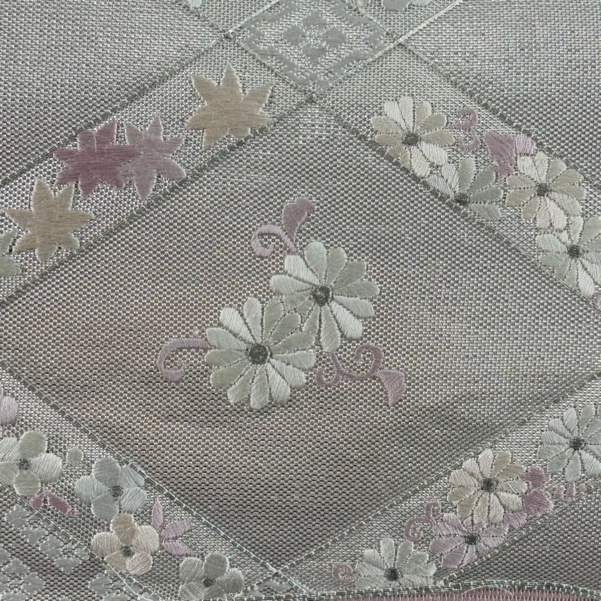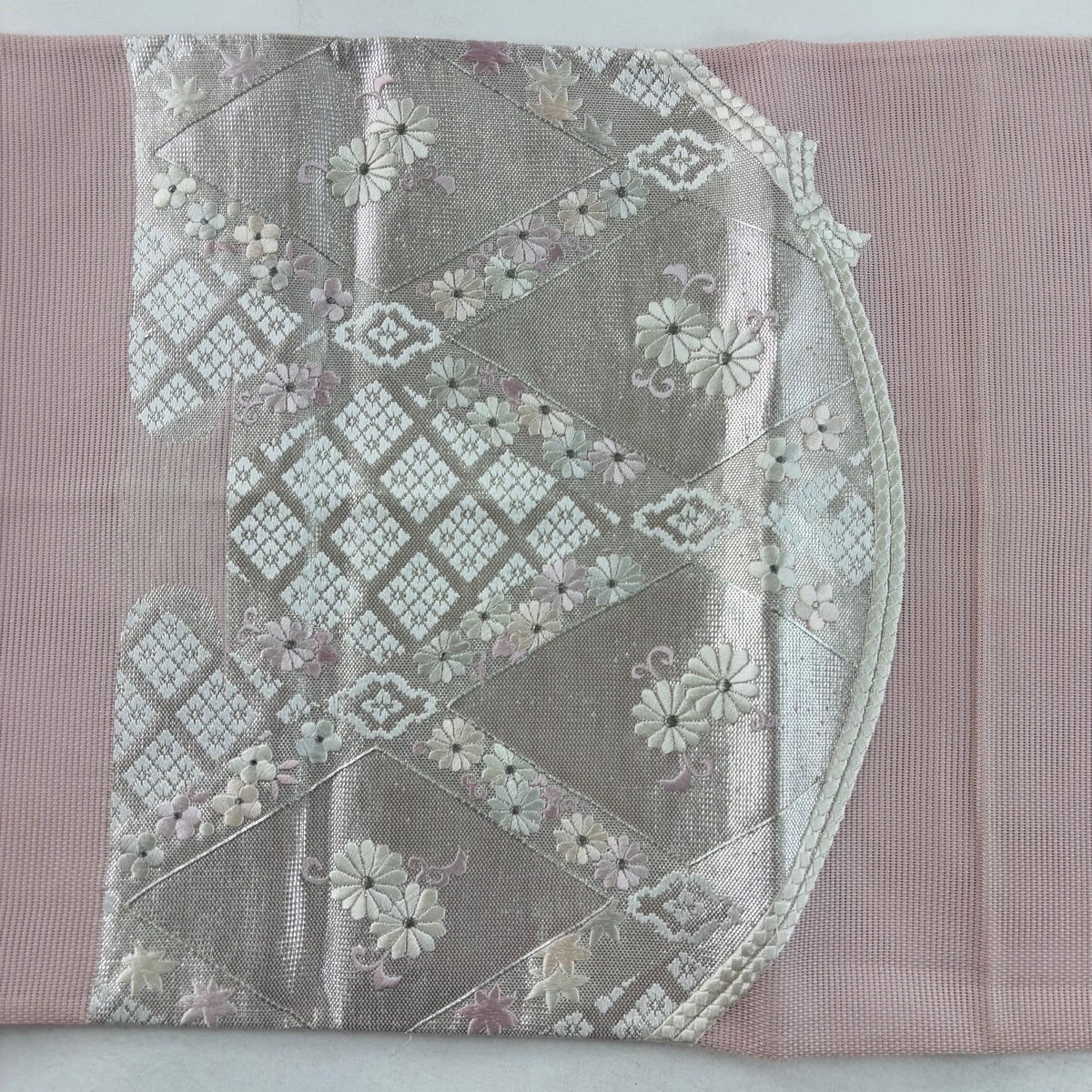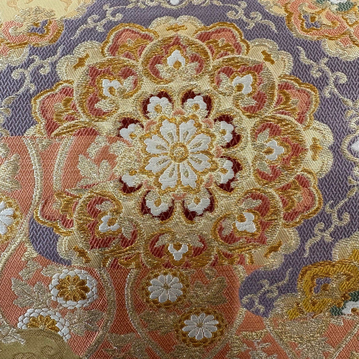 【美品】 袋帯 秀品 証紙あり 菊 七宝 箔 西陣織 灰紫 六通 正絹
