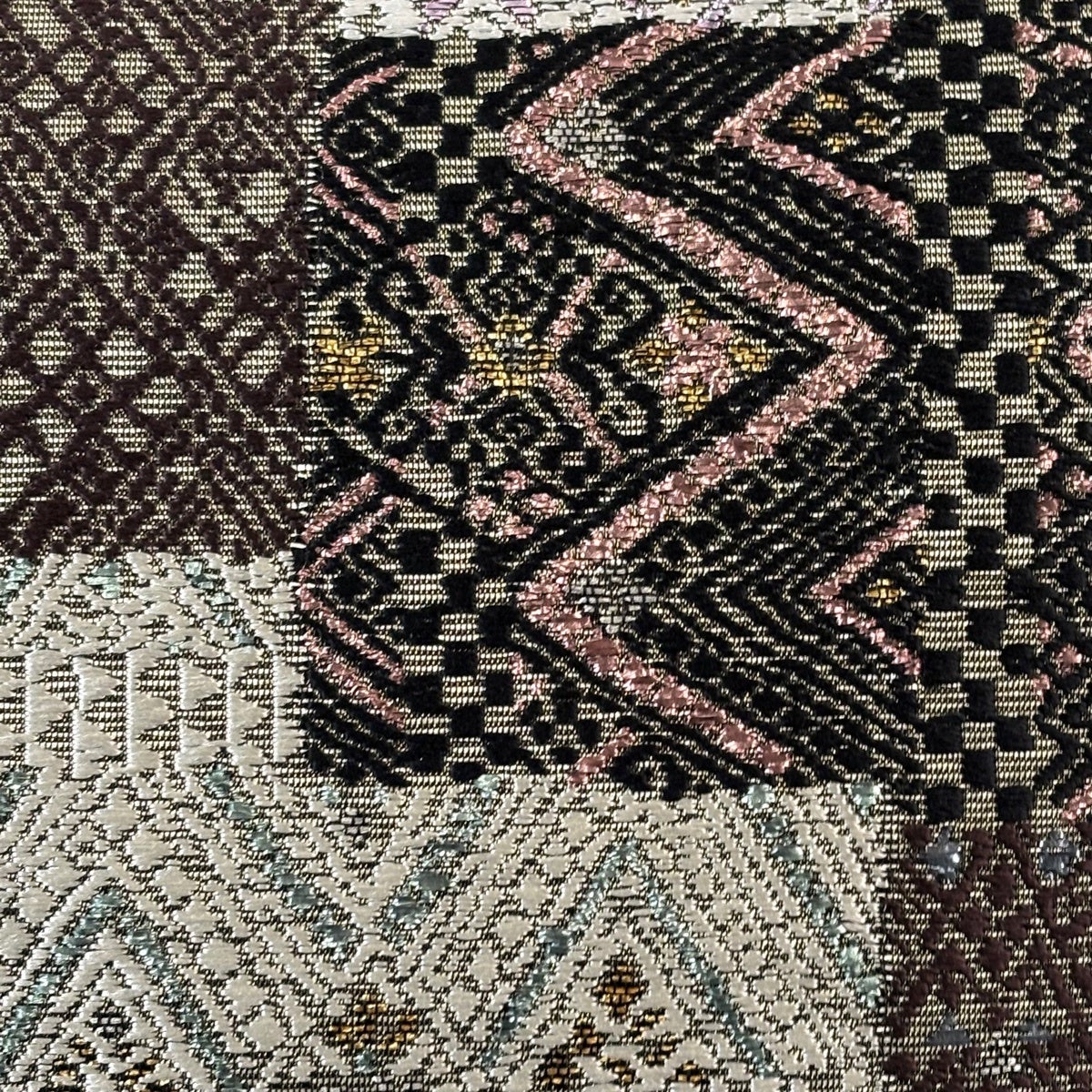 袋帯 秀品 夏帯 夏紬地 草花 幾何学模様 絞り 小豆色 お太鼓柄 正絹