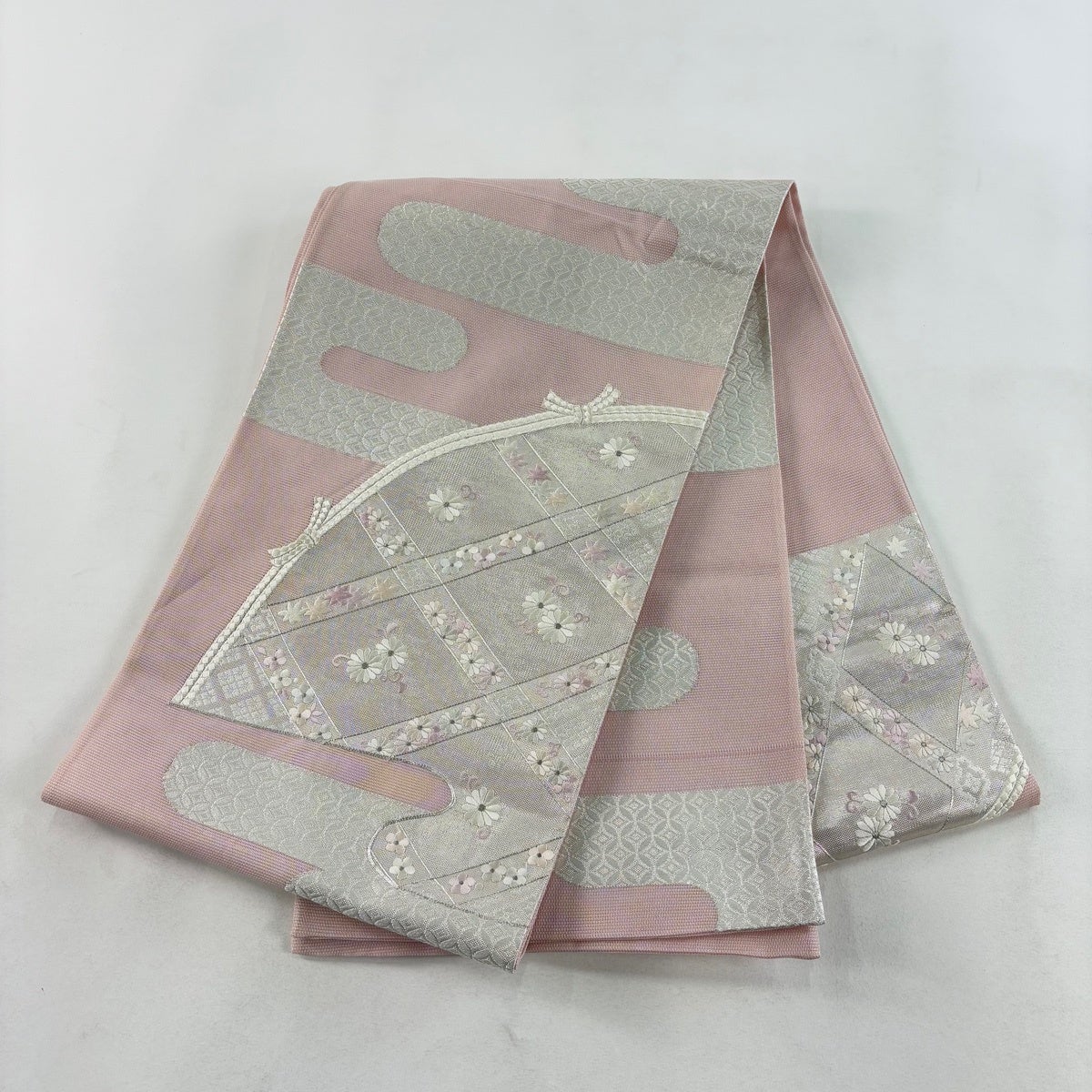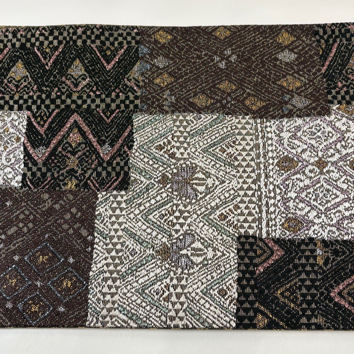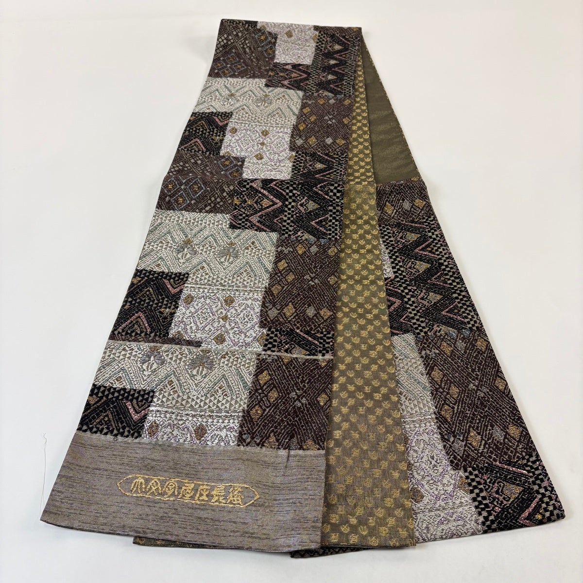 【美品】 袋帯 秀品 夢はな舞 桜 市松 金銀糸 箔 茶色 六通 正絹