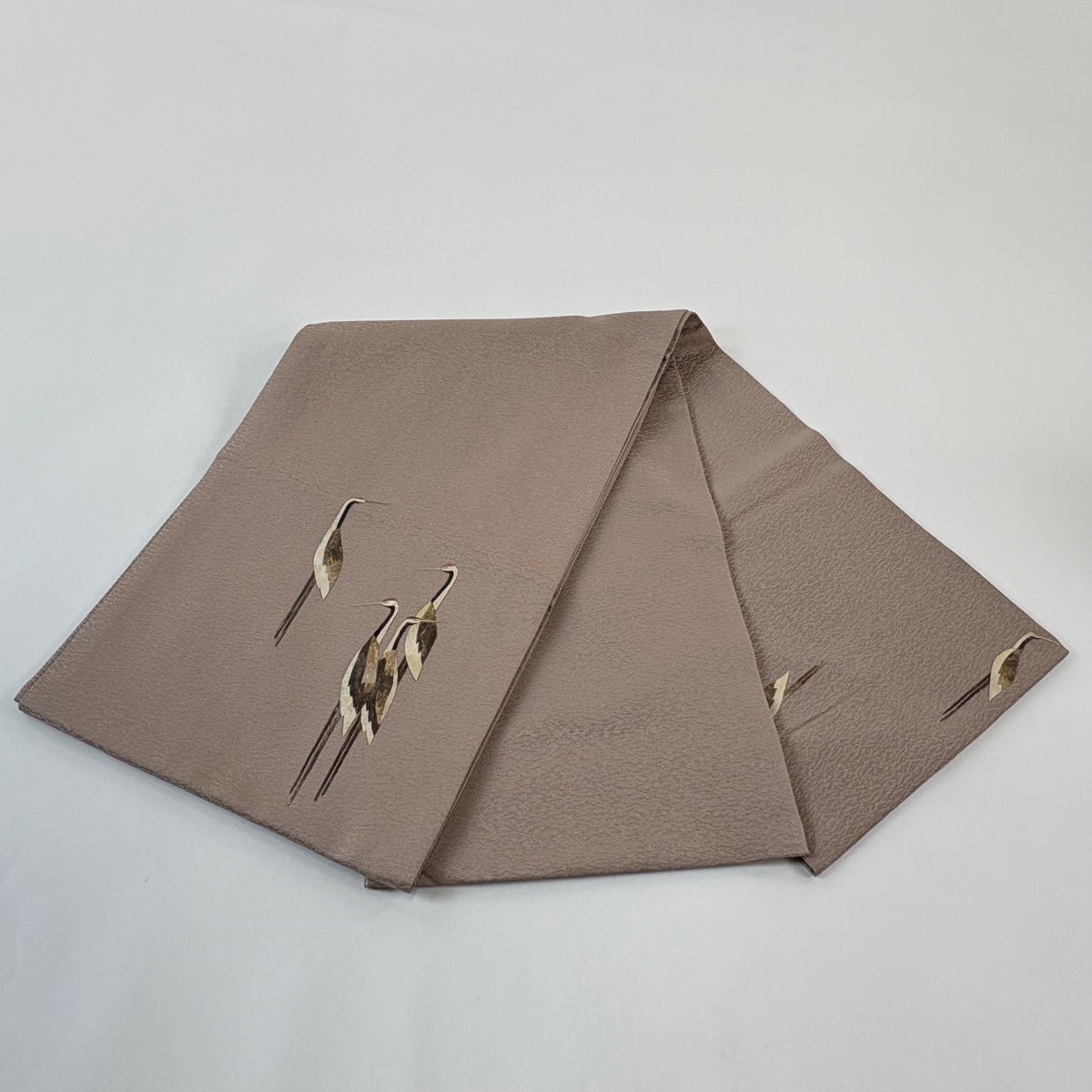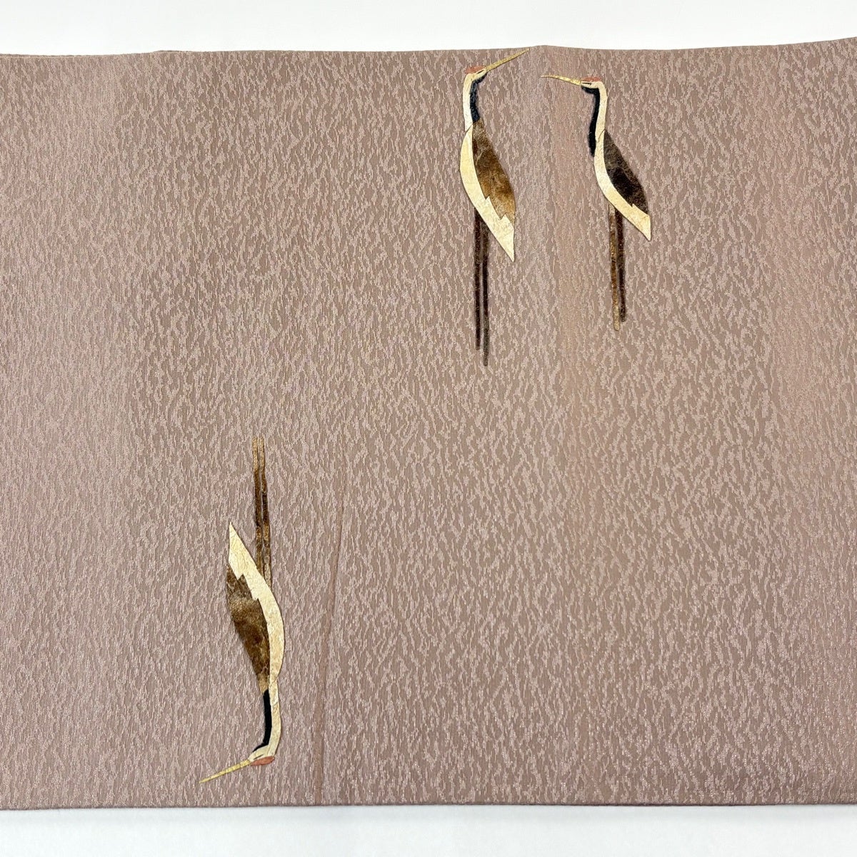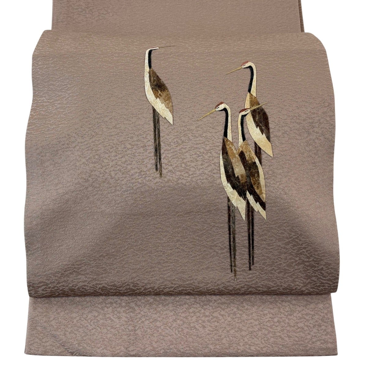 【美品】 袋帯 秀品 貝合わせ 鶴 金糸 箔 ベージュ 六通 正絹