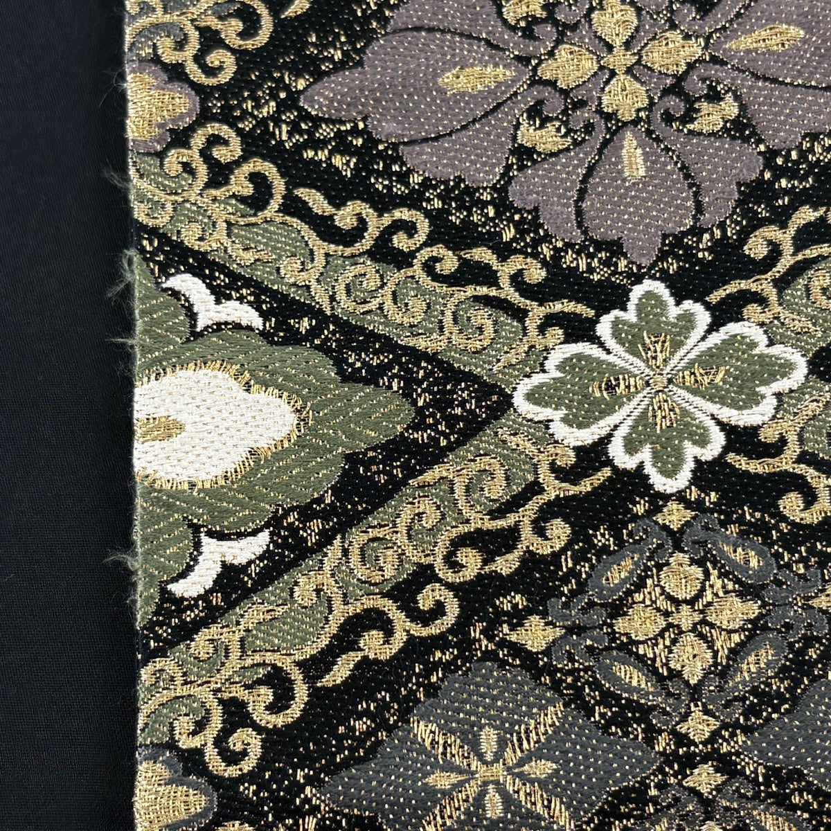 袋帯 秀品 草花 有職文様 刺繍 黒 六通 正絹