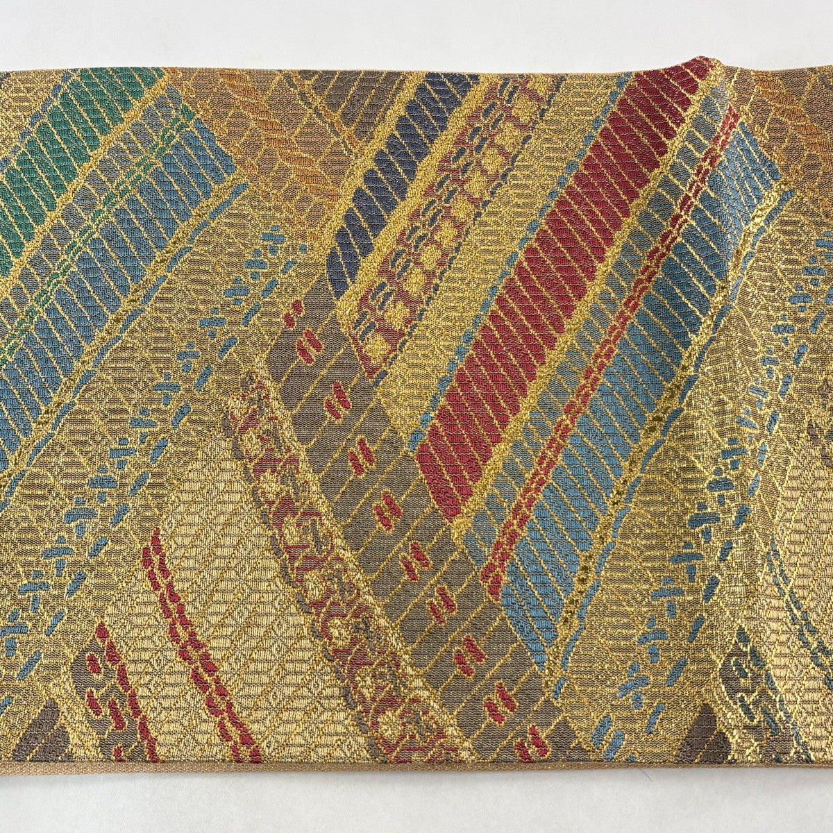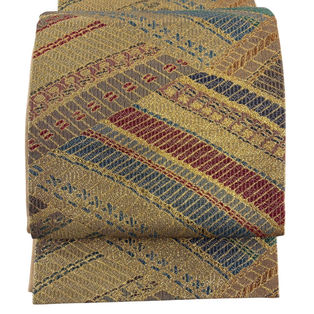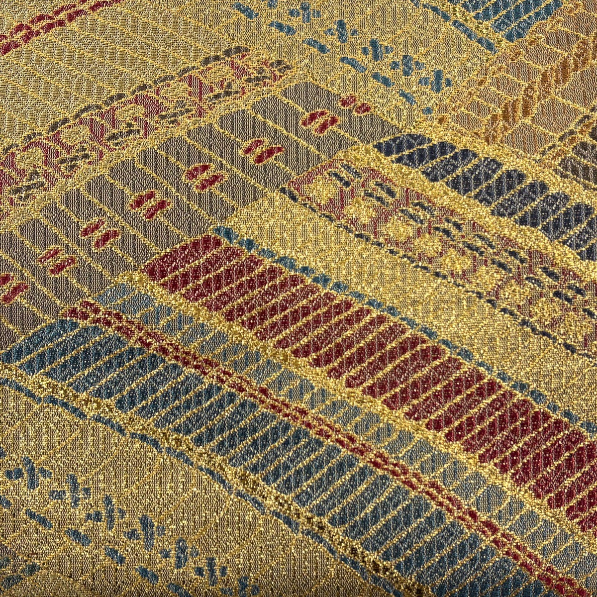 袋帯 秀品 幾何学模様 箔 金色 お太鼓柄 正絹