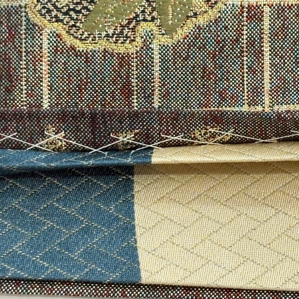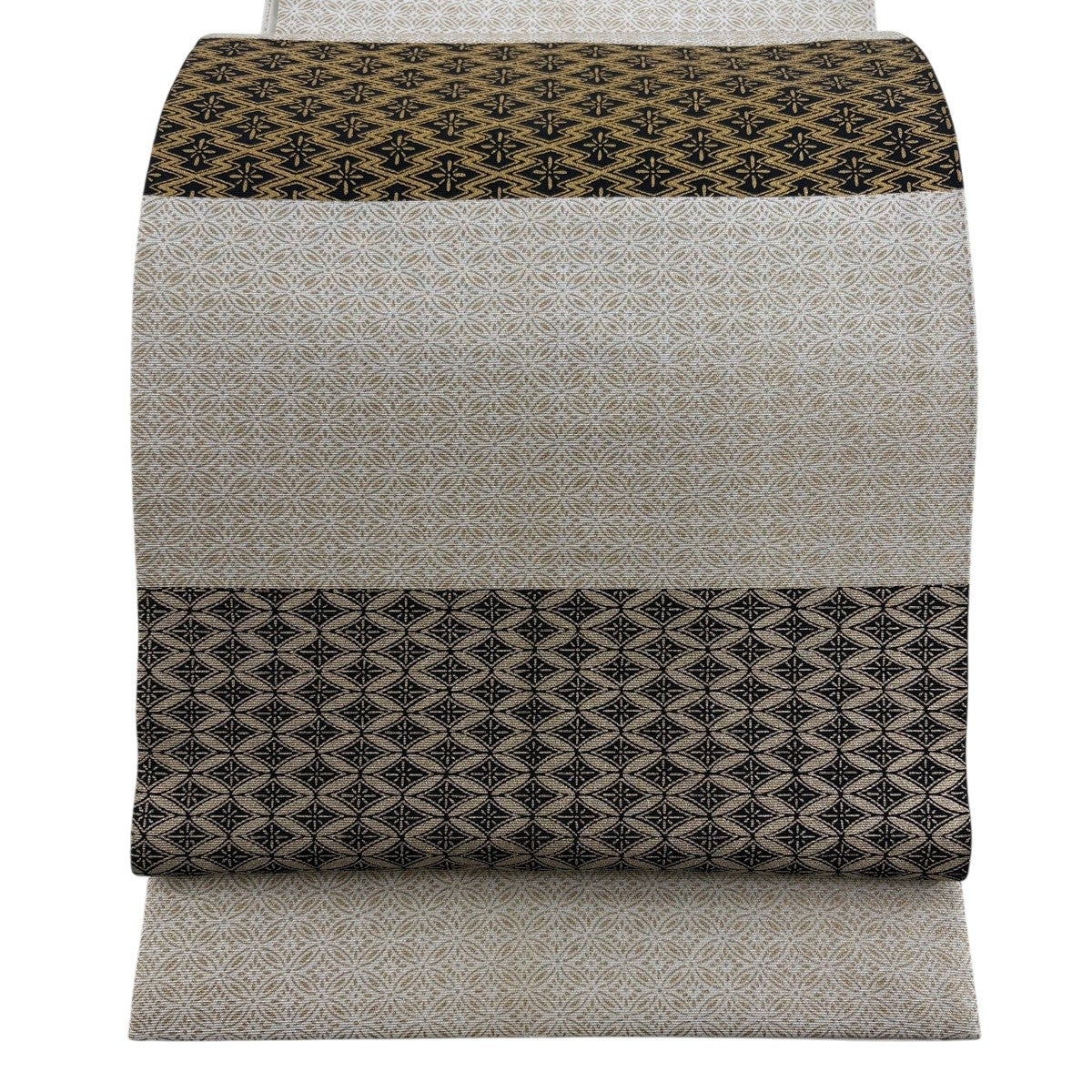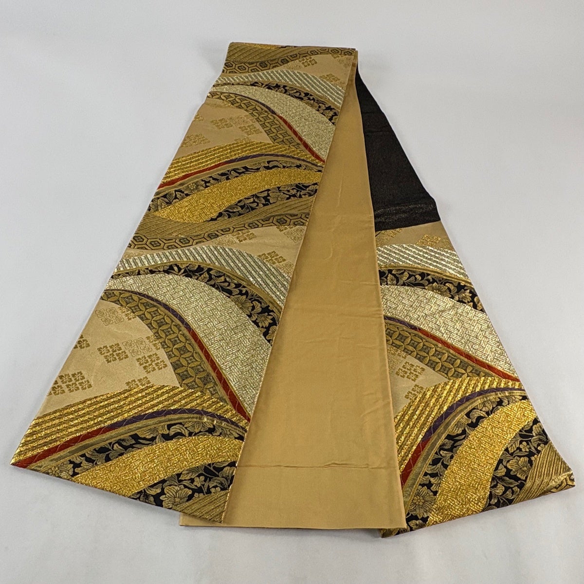 袋帯 秀品 幾何学模様 箔 金色 お太鼓柄 正絹