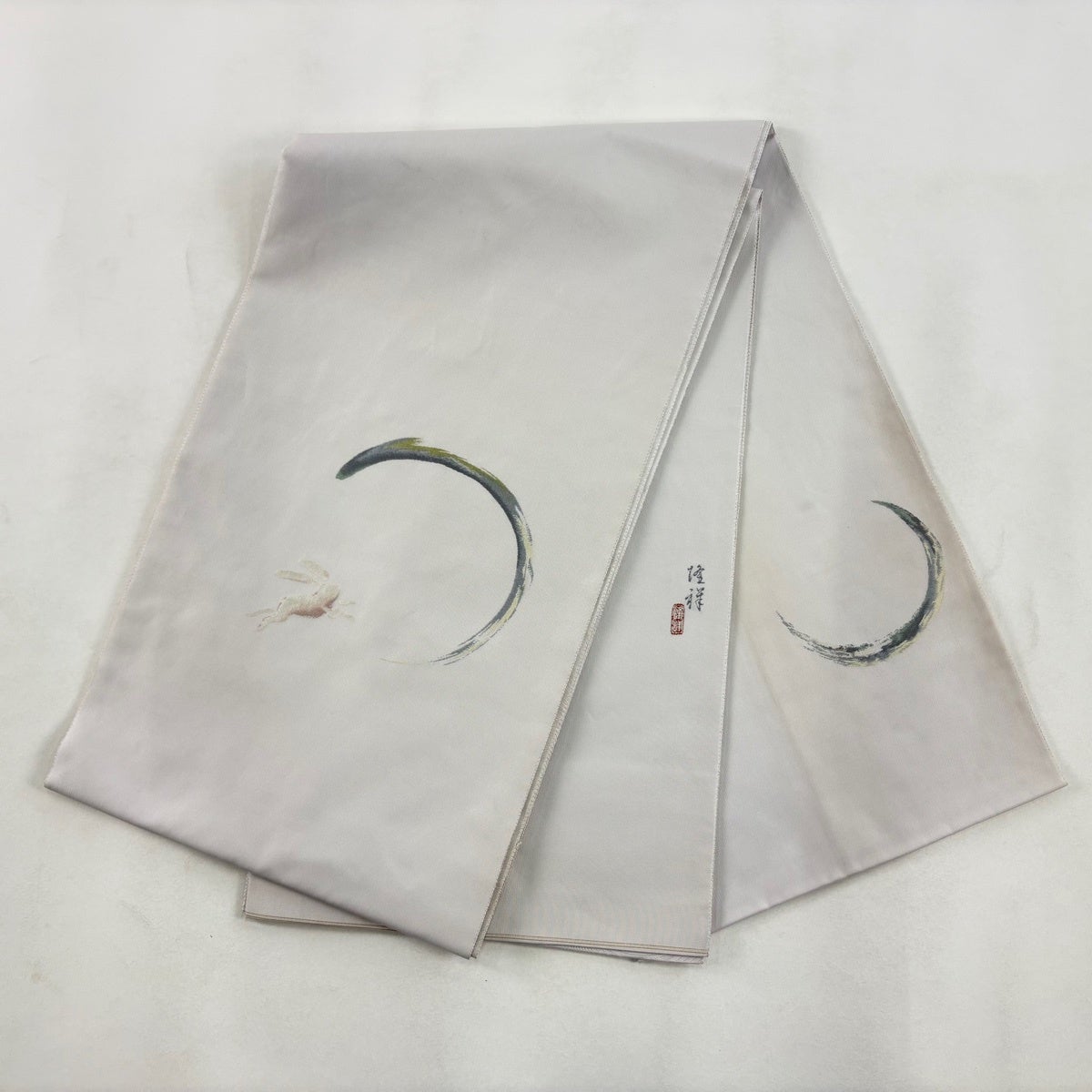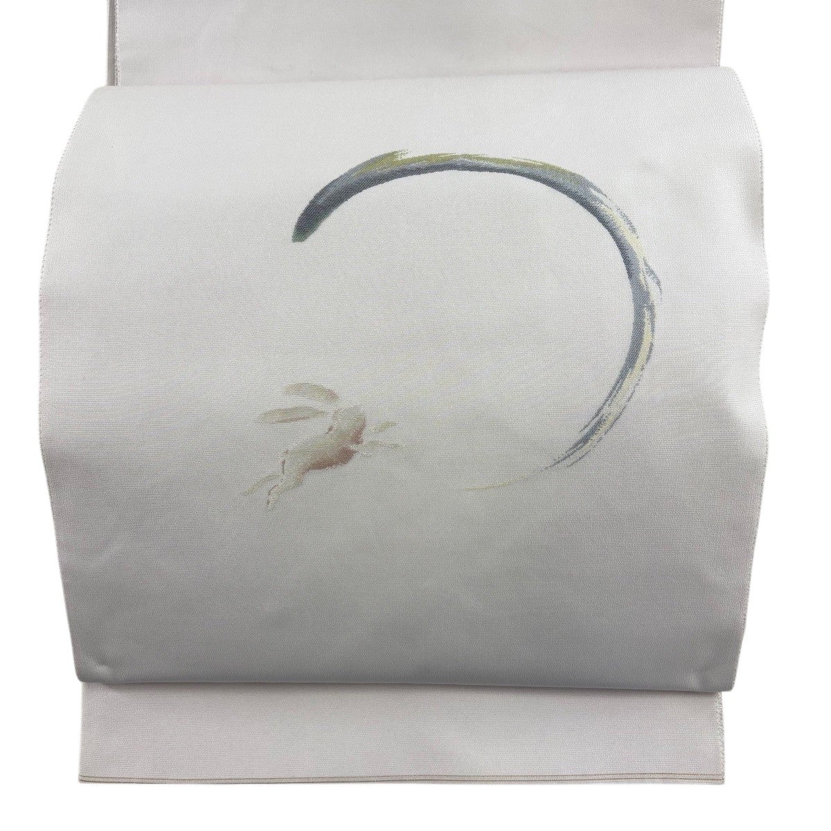 袋帯 秀品 落款あり 月兎 灰紫 お太鼓柄 正絹