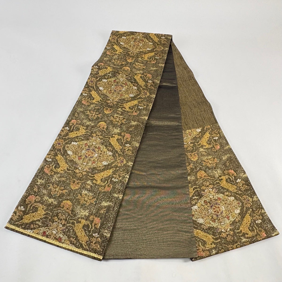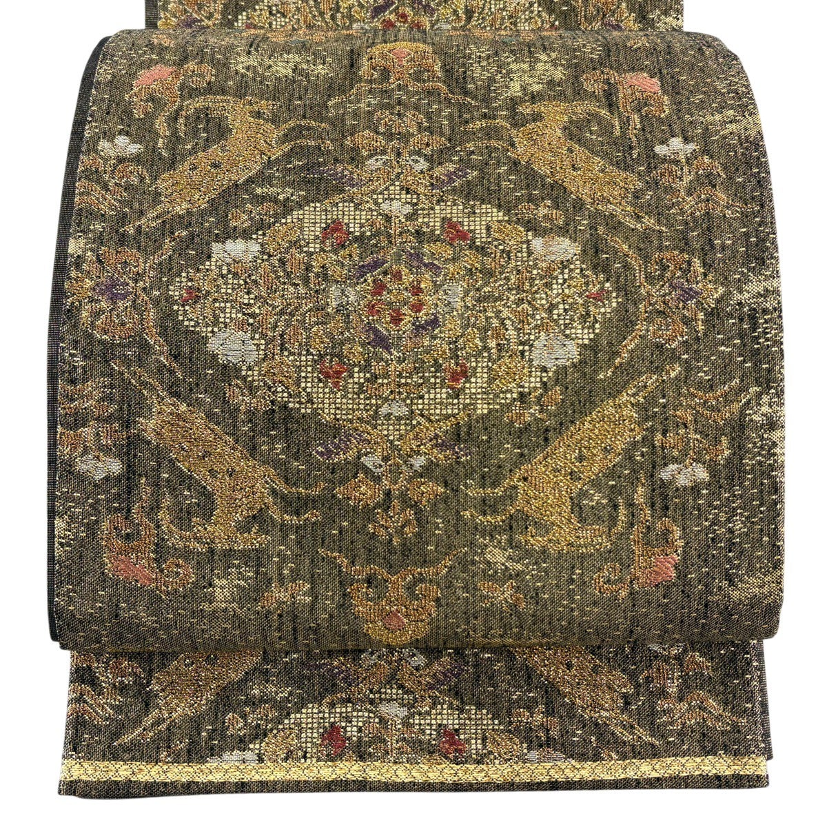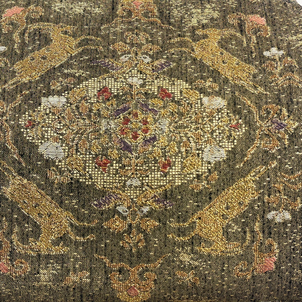 袋帯 秀品 華文 動物 箔 金糸 金色 六通 正絹